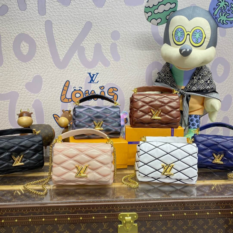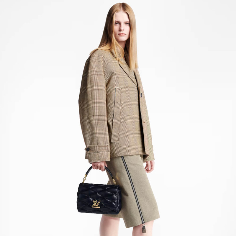 Nicolas Ghesquière explores new techniques to embellish the GO-14 MM handbag. Here padded lambskin is quilted, and a refined toasted effect is applied by hand, giving it an edgy futuristic allure. The top handle and adjustable chain – both detachable – enable carry options. It’s signed with the House’s emblematic LV Twist lock.