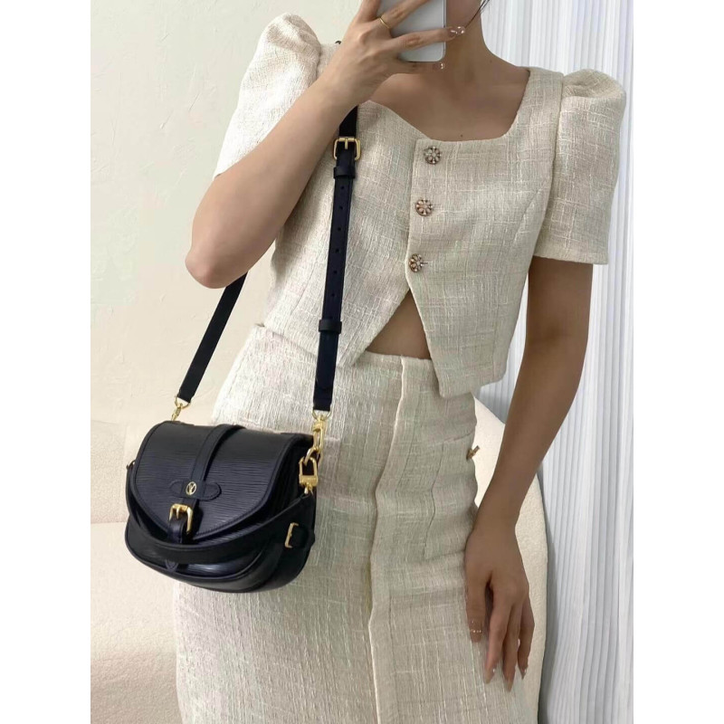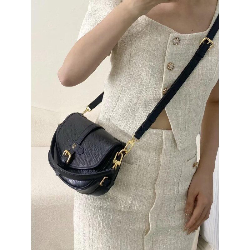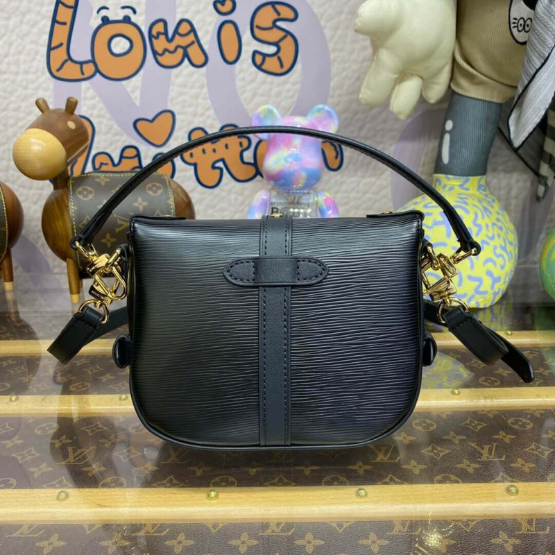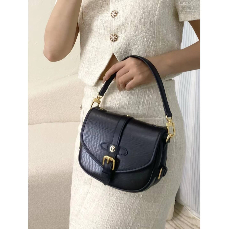 This edition of the Saumur BB in a new, softer Epi leather revisits an archival design. The saddle-bag silhouette is detailed with House signatures, including the LV Circle emblem and finely crafted buckles. The front buckle is fitted with a magnetic closure, a modern touch. The strap and top handle are both detachable, for a variety of styling options.