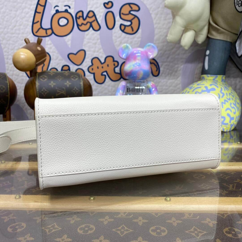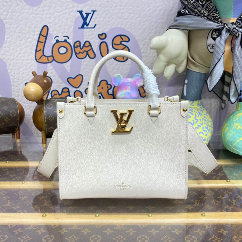With its sleek design and sophisticated details, the Lock & Go handbag embodies effortless chic. Fashioned from smooth grained calf leather, it is finished with a gleaming LV turn lock, engraved rivets and a hot-stamped Louis Vuitton signature. Perfect for daily use, this versatile bag has both top handles and an adjustable, detachable strap for shoulder or cross-body wear.