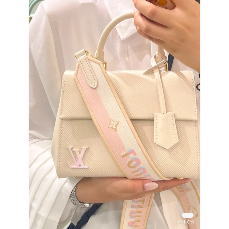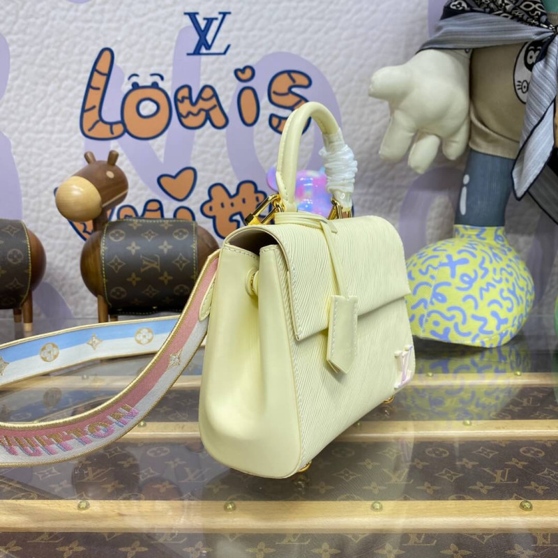 From the LV Milky Way capsule comes this charming Cluny Mini handbag. Fashioned from grained Epi leather, it is offered in Quartz, a refined, versatile shade enlivened by gold-tone hardware. The LV initials in gradient multicolor resin add a chic signature touch to this model, a Valentine’s Day exclusive.