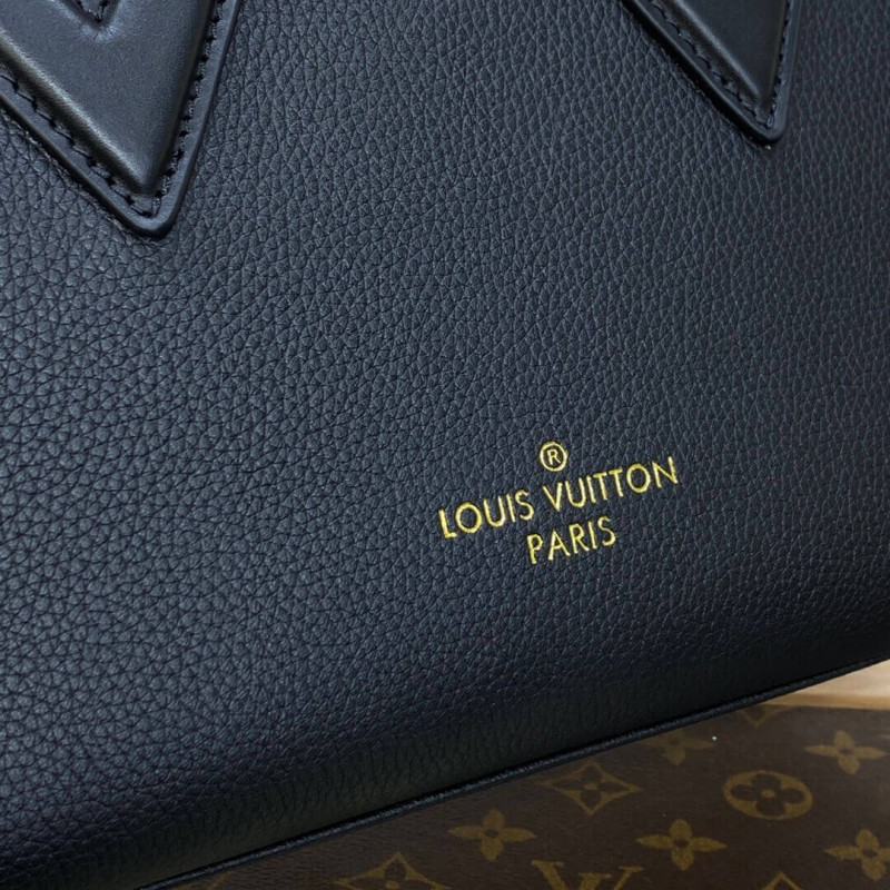 The On My Side tote bag is made from calf leather, with perforated calf leather on the gusseted sides. The elegant colorway is livened up with a gold-color twist closure and gold-color buckles on the removable strap. Two outside pockets and a roomy interior makes this a practical bag.