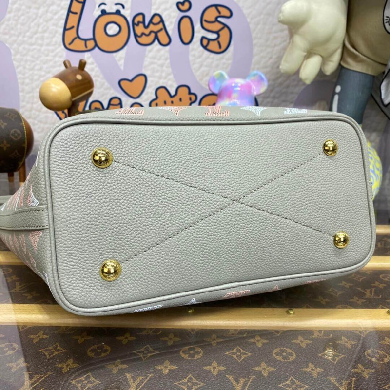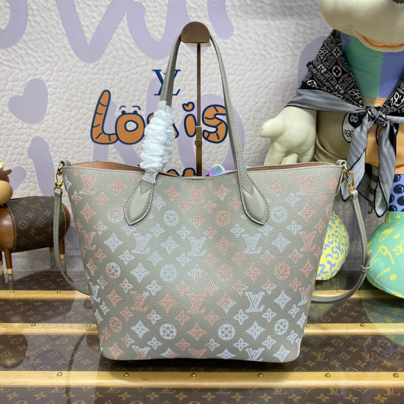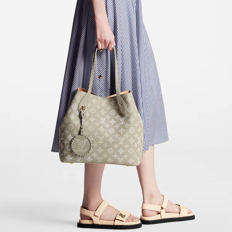 The Blossom MM tote bag is made from lightweight Mahina calfskin, with the Monogram pattern perforated into the elegant gray leather. The supple draped design makes it comfortable against the body. Inside the bag, a removable zipped pocket allows to secure belongings. Two long handles enable shoulder wear.
