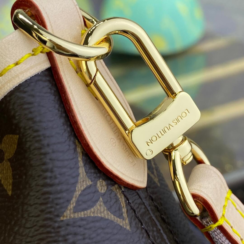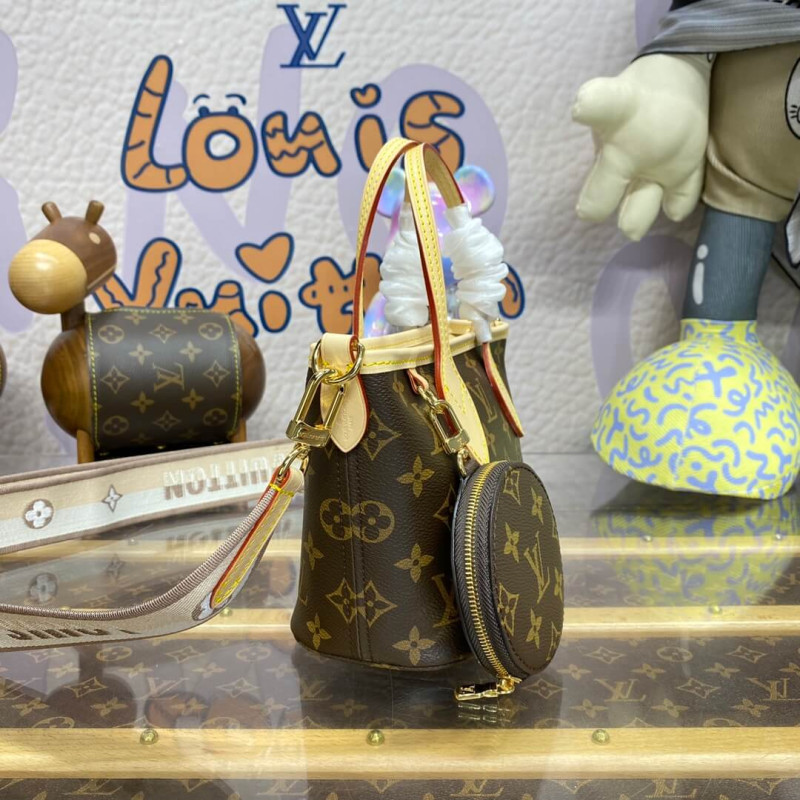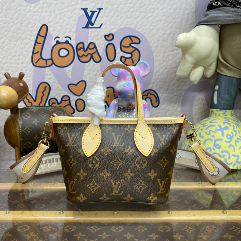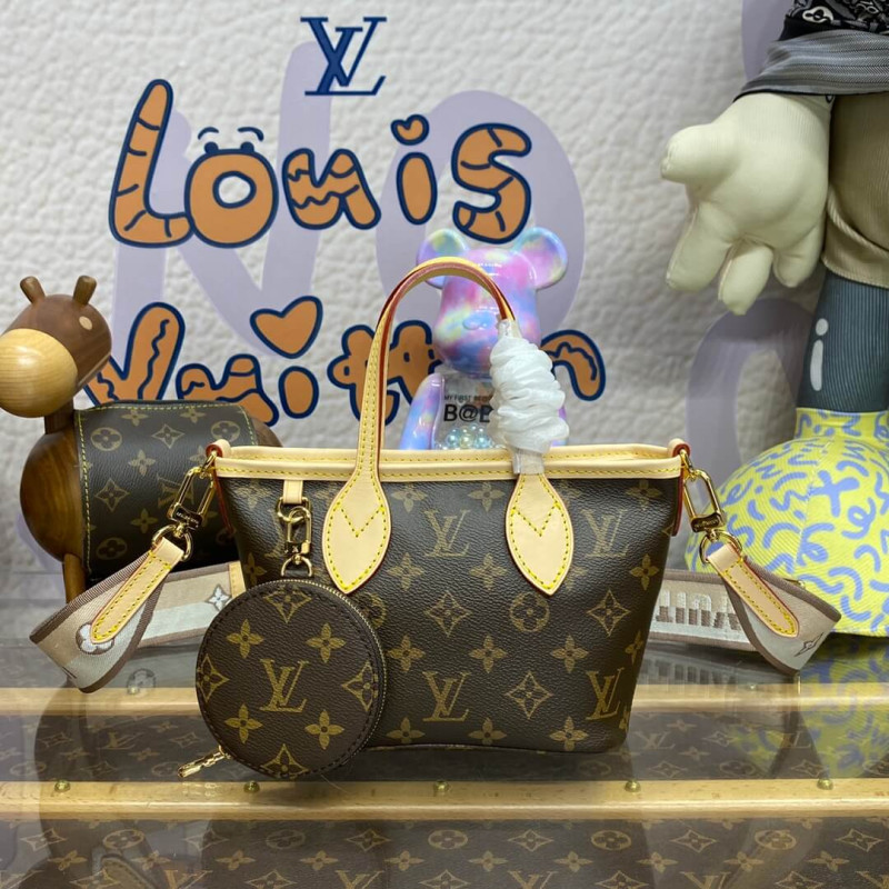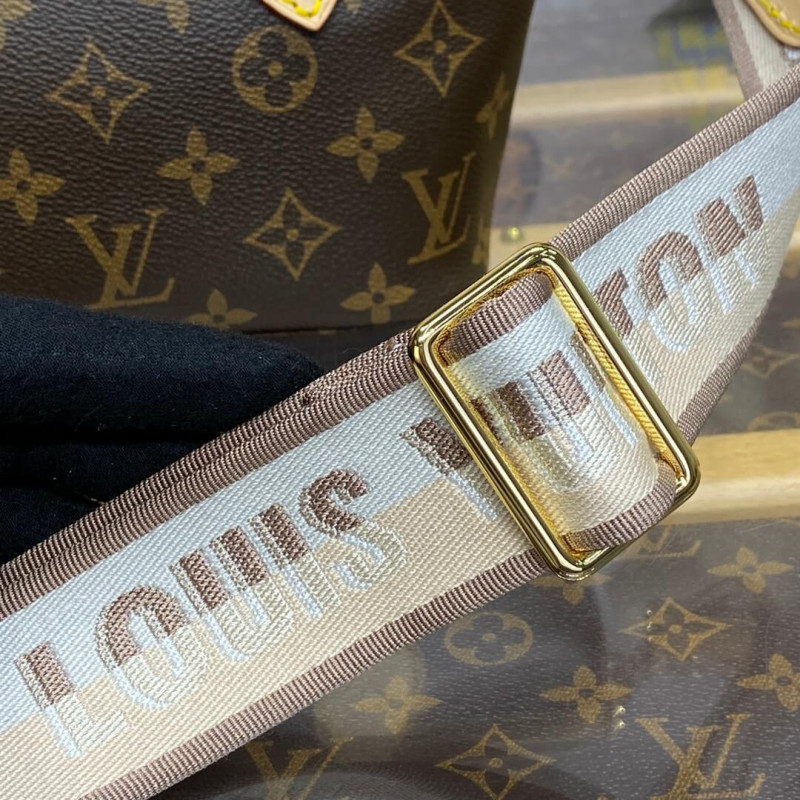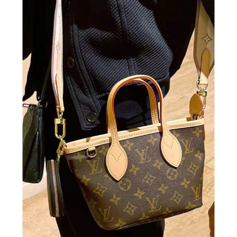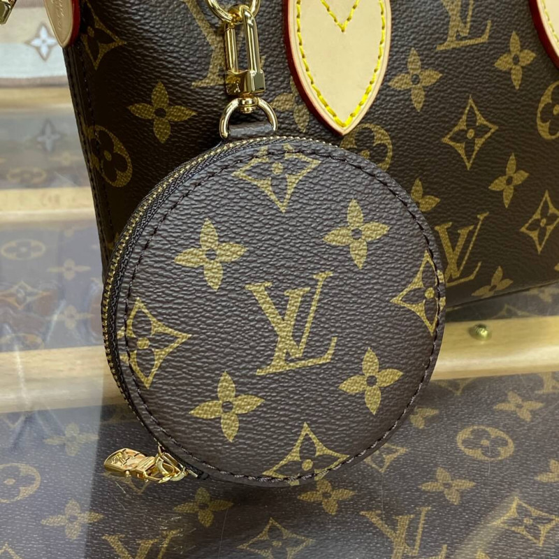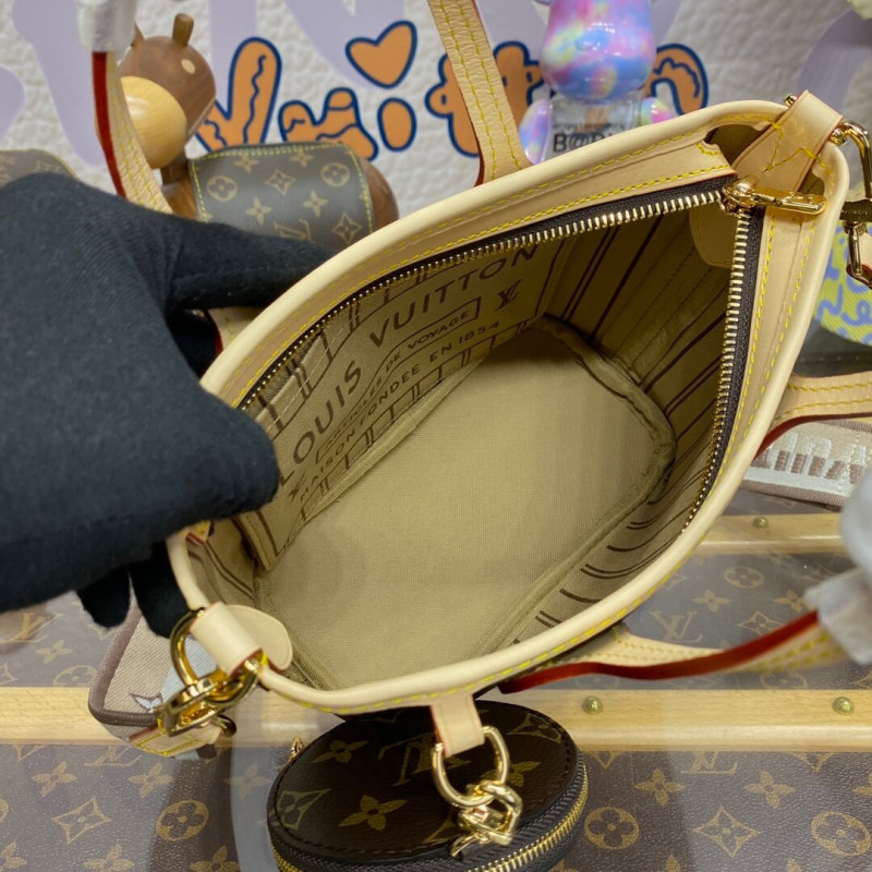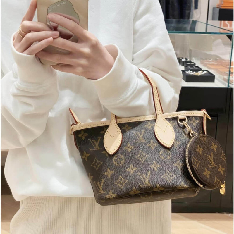 This season the House’s forever favorite, the Neverfull, gets reinvented as a mini-tote: the Neverfull BB handbag. This scaled-down version features an adjustable and detachable textile strap as well as a playful coin purse attached to a D-ring. It is just the right size for small essentials like a smartphone and compact wallet.