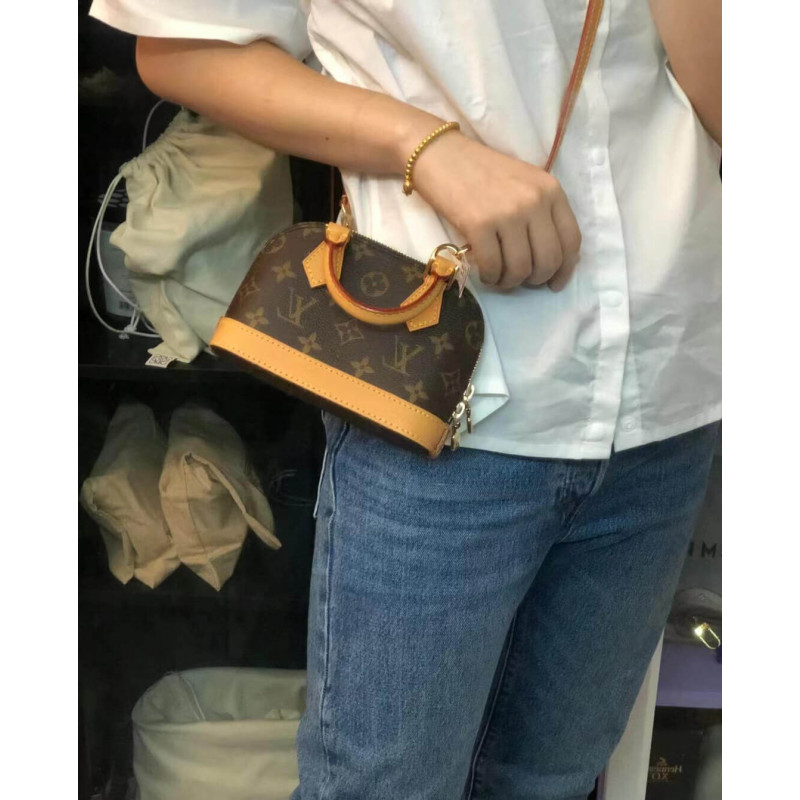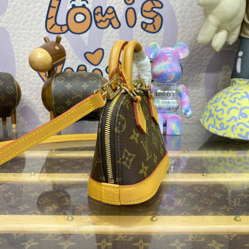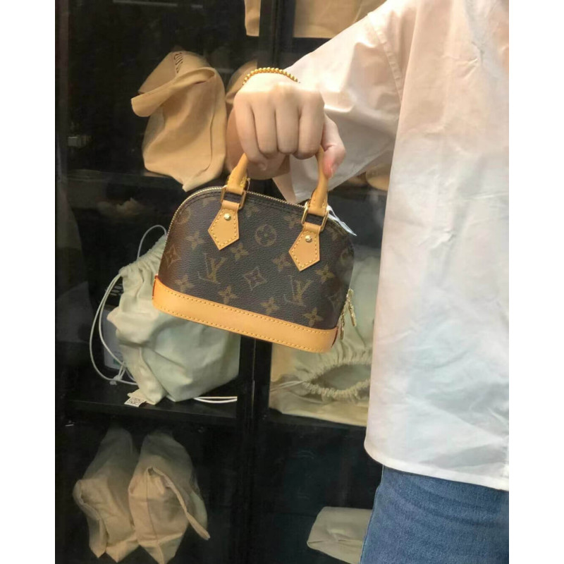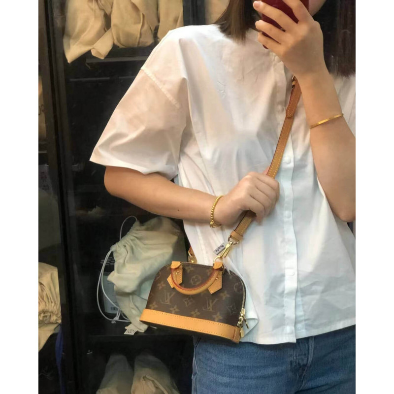 A miniature replica of the iconic Alma bag, the Nano Alma pairs Louis Vuitton s signature Monogram canvas with natural leather trim. This exquisitely crafted piece combines heritage appeal with modern functionality: the double-zip closure reveals a surprisingly spacious interior, while the two leather handles and adjustable, removable shoulder strap offer multiple carry options.