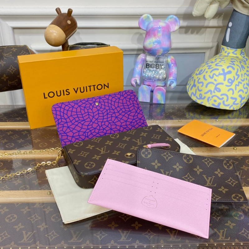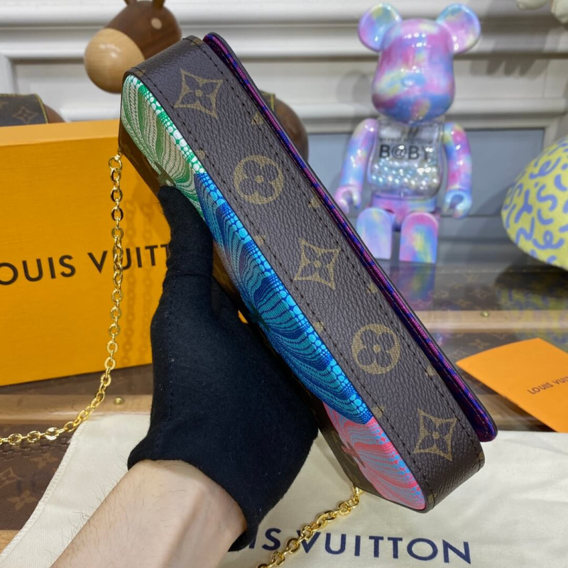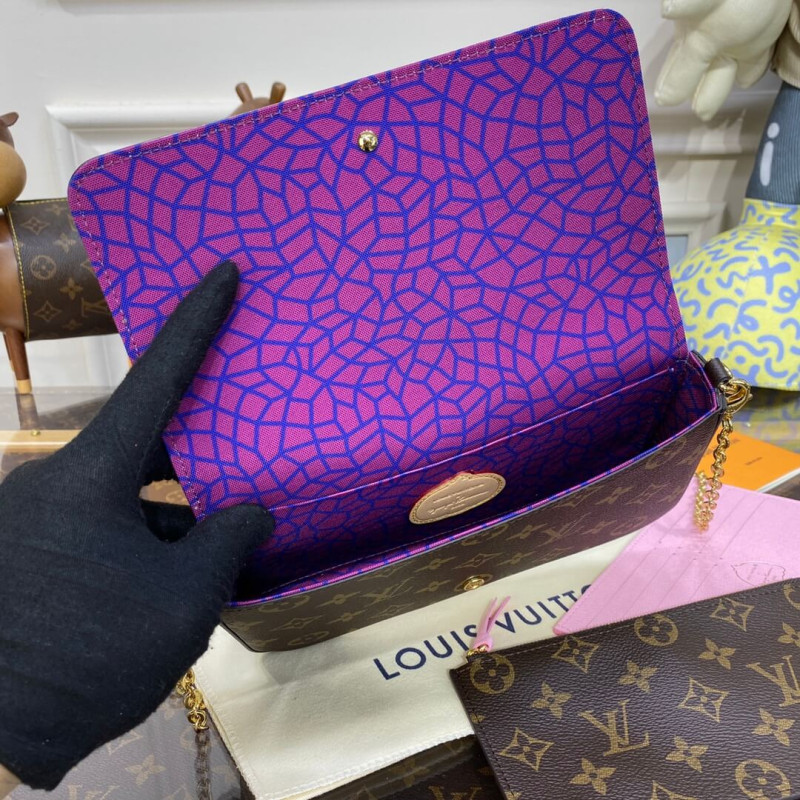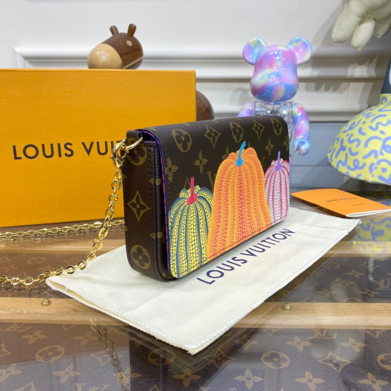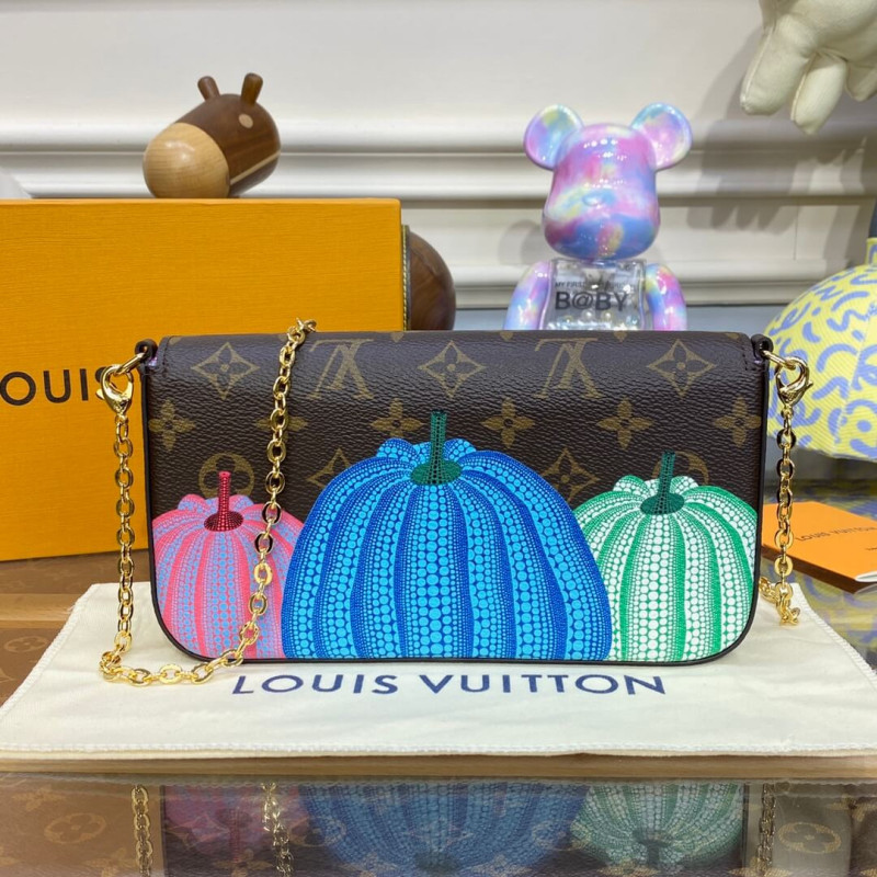The LVxYK Félicie Pochette is infused with creative charm as part of the exceptional new Louis Vuitton x Yayoi Kusama collection. The venerated Japanese artist has made pumpkins a thematic element in her paintings and sculptures, symbolizing warmth and optimism. This stylish, functional clutch features a trio of colorful pumpkins printed on Monogram canvas. And it comes with a removable card holder, ideal for contactless payment.