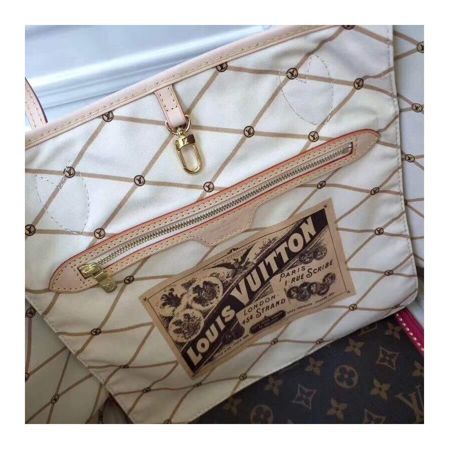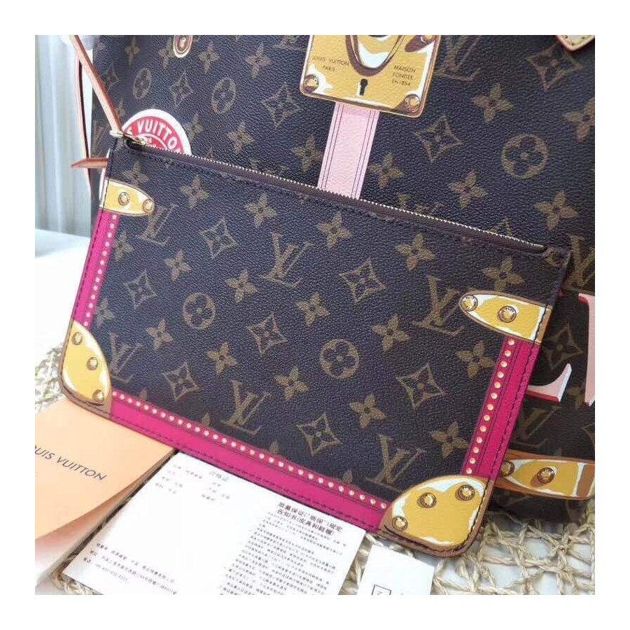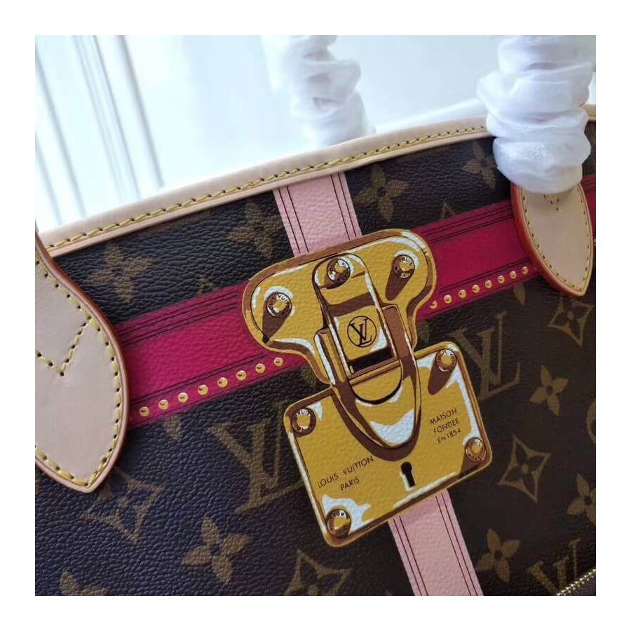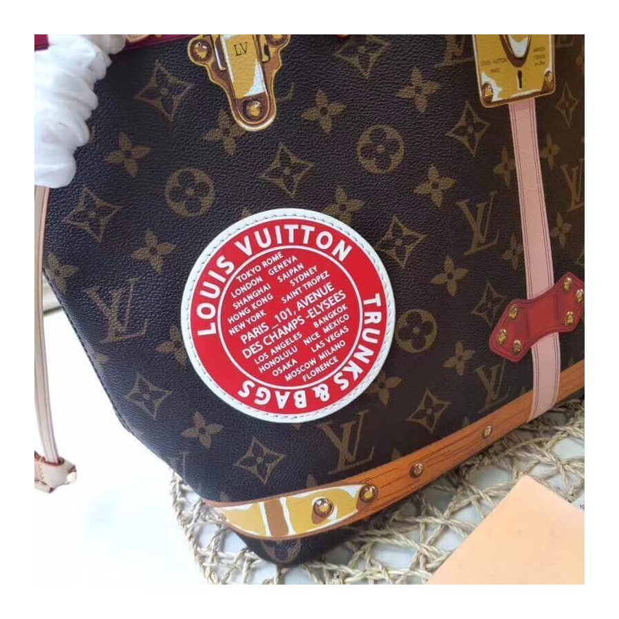 Taking inspiration from the House’s iconic trunks, this Neverfull MM boldly reinterprets Monogram canvas by overlaying screen prints of trunk corners and historic LV locks for a trompe l oeil effect that freshens up this effortlessly practical tote.