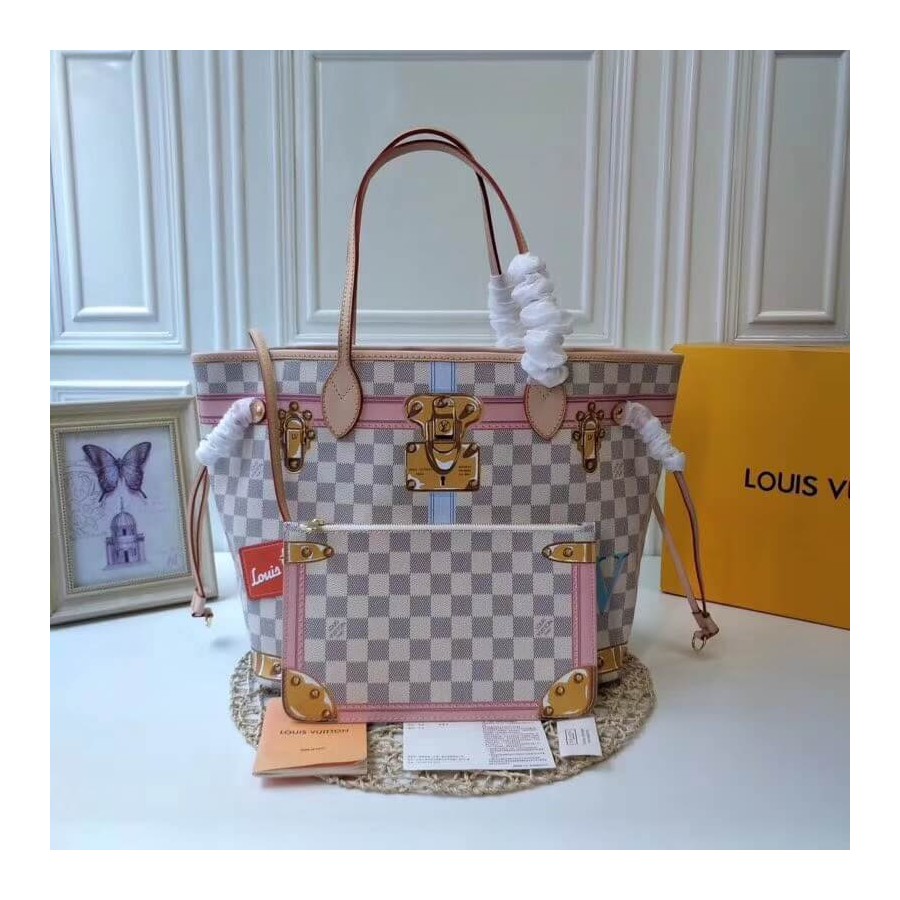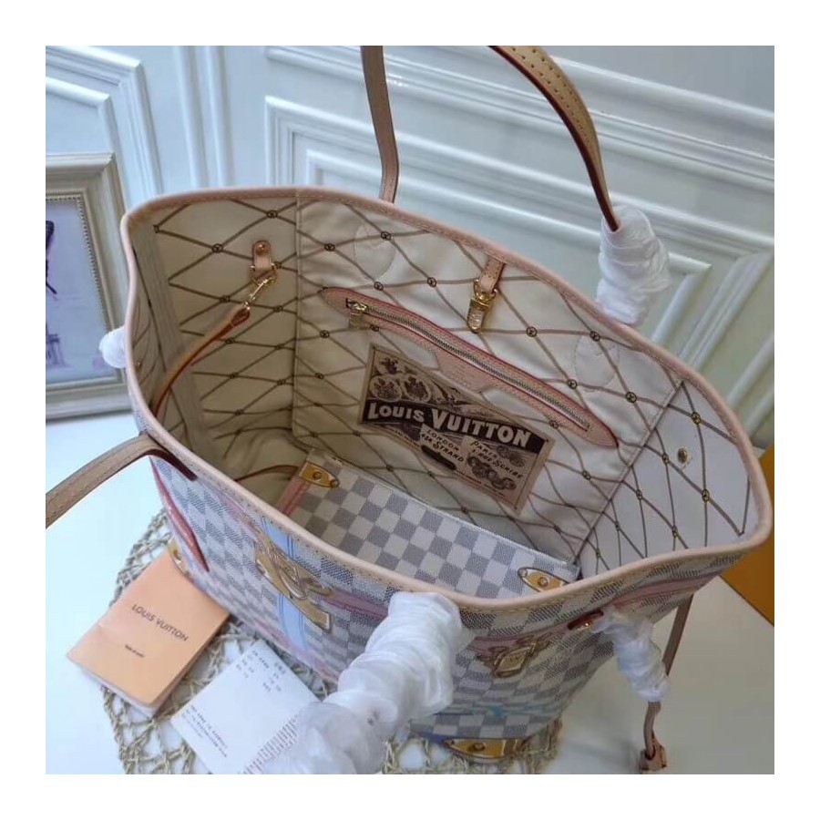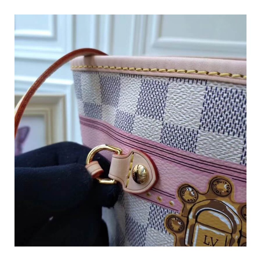 Effortlessly practical, the Neverfull MM is an ideal tote whose laces can be tightened to create a more compact, chic city bag. This version with its trompe l oeil LV trunk details brings a post-modern twist to a boldly versatile bag.