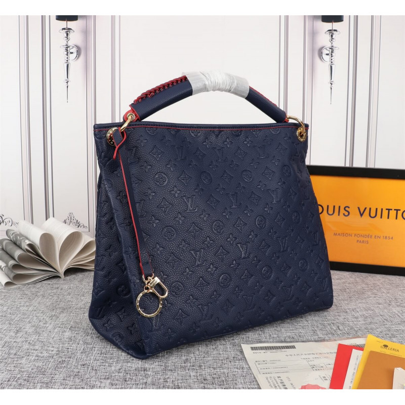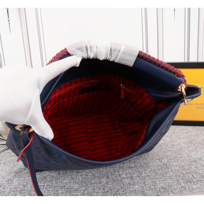 The Artsy MM handbag delights with its refined craftsmanship and functional features. Made from extra-supple Monogram Empreinte embossed leather, this quietly luxurious hobo features a handmade, cross-stitched handle that slips easily over the shoulder. Beautifully detailed with gleaming golden hardware (note the engraved eyelets, D-ring and key holder), it opens to reveal a roomy, cleverly organized interior.