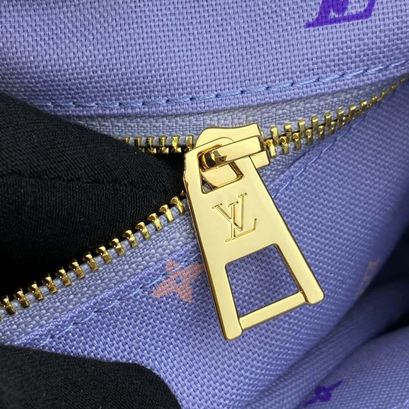 Fashioned from Monogram canvas in a new gradient pastel colorway, the OnTheGo PM tote brings a fresh touch to Spring silhouettes. This versatile bag offers many styling options, thanks to its cute detachable coin purse, removable jacquard strap, and two articulated Toron top handles. The most compact OnTheGo model, it easily holds a tablet, wallet and smartphone.
