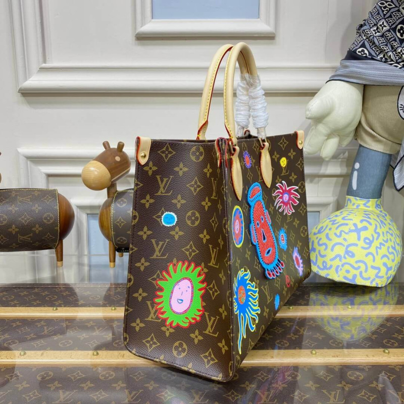 LV x YK OnTheGo MM with Faces Print and Embroidery M46429