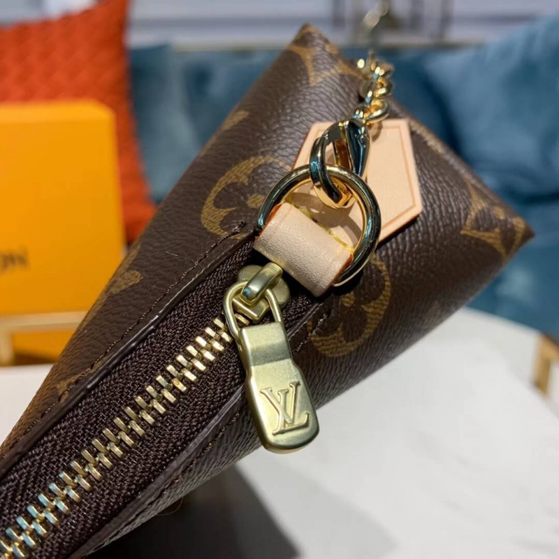 In ever-stylish Monogram canvas the Cosmetic Pouch GM is a luxurious accessory. Shiny golden brass details and textile lining complete its elegant look.