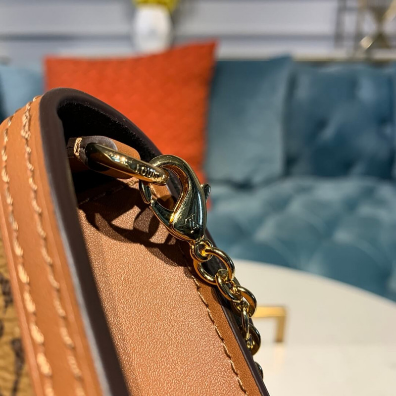 Combining Monogram Reverse canvas, the Dauphine Chain Wallet reprises all the signatures of the iconic Dauphine collection: the vintage look, the calf-leather trim and the LV Circle clasp. This neat yet spacious wallet features a removable gold-tone chain, enabling it to be carried in several different ways.