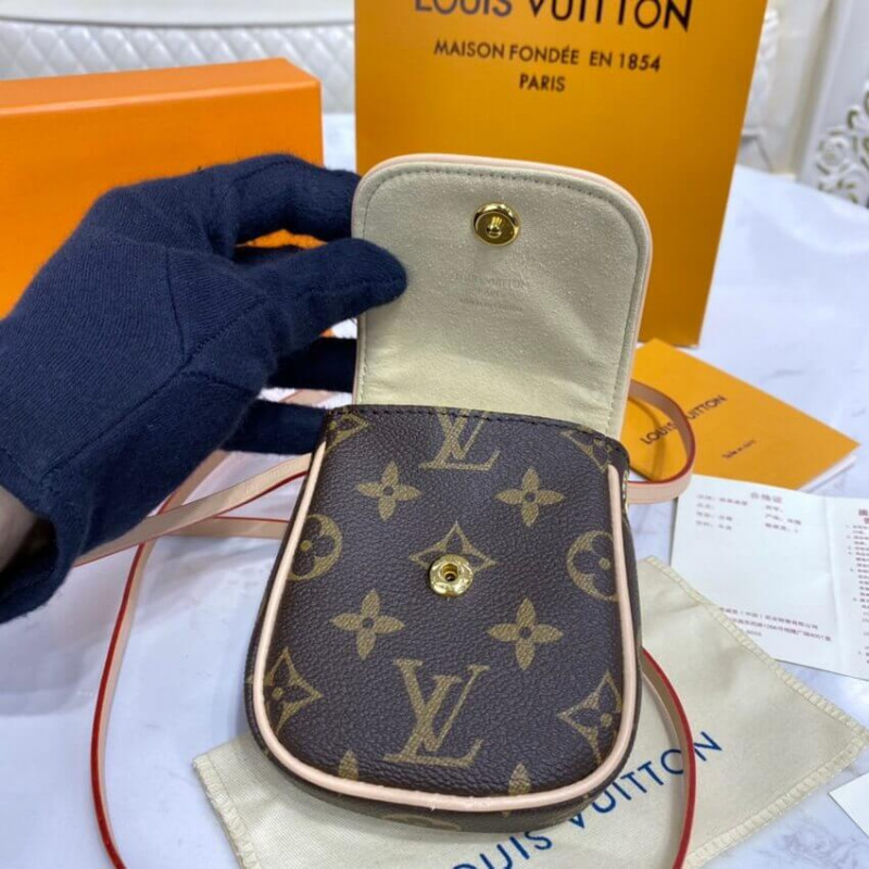 This small strap bag is finely crafted of classic Louis Vuitton monogram on toile canvas. The bag features a vachetta cowhide leather trim and a long cross body strap with polished brass hardware. The frontal flap opens to an ivory microfiber interior.