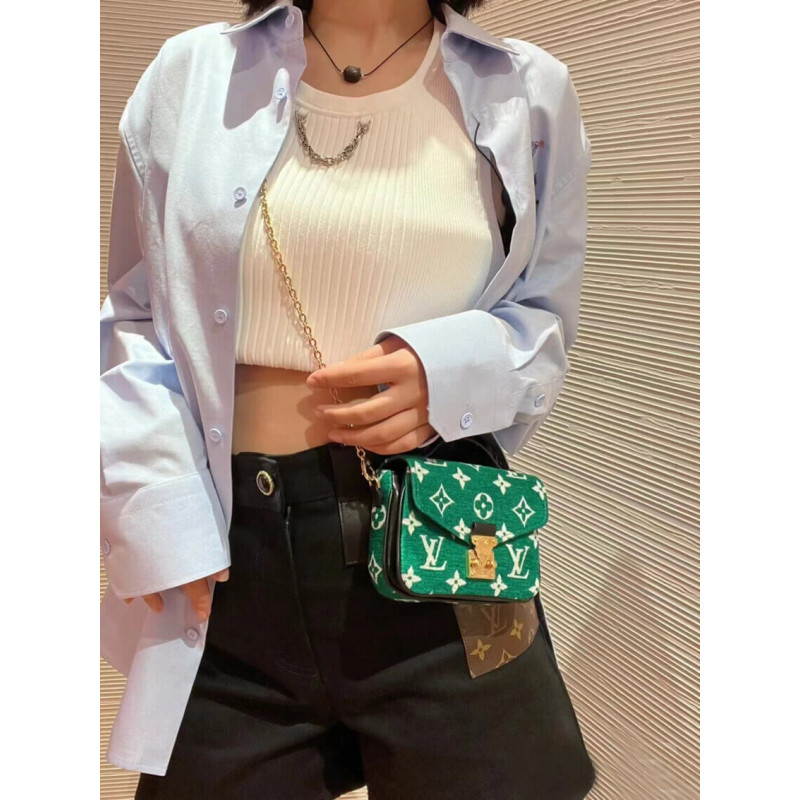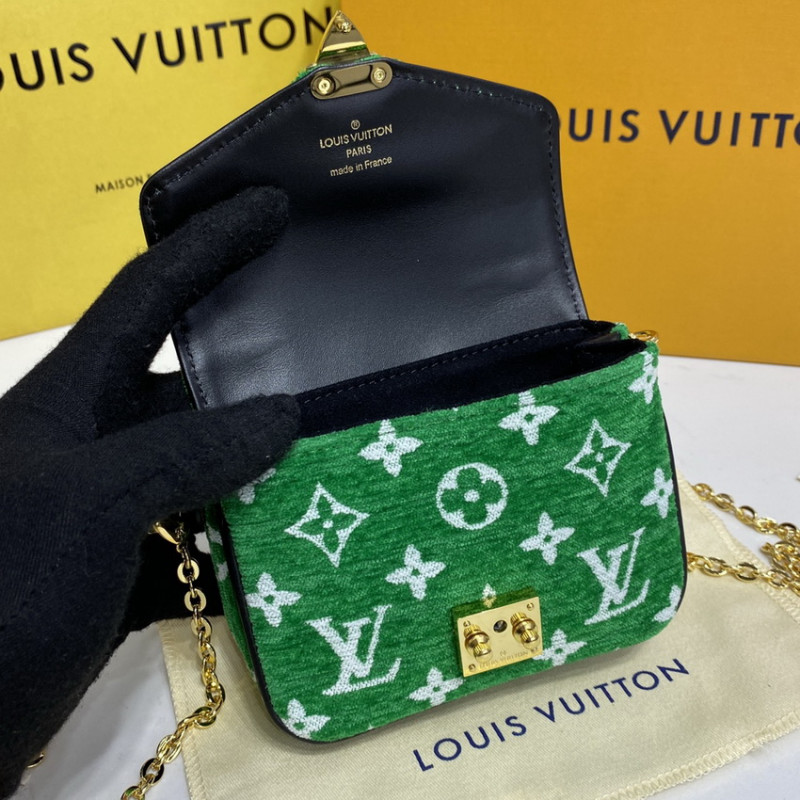 This edition of the Micro Métis bag belongs to the LV Match collection, which was inspired by the world s top tennis tournaments and the colors associated with courts and equipment. Crafted from Monogram jacquard velvet, woven from sustainable yarns, this mini-satchel on its removable chain is a fashionable way to carry essentials. It features the signatures of the Métis line, notably the iconic S-lock of Louis Vuitton trunks.