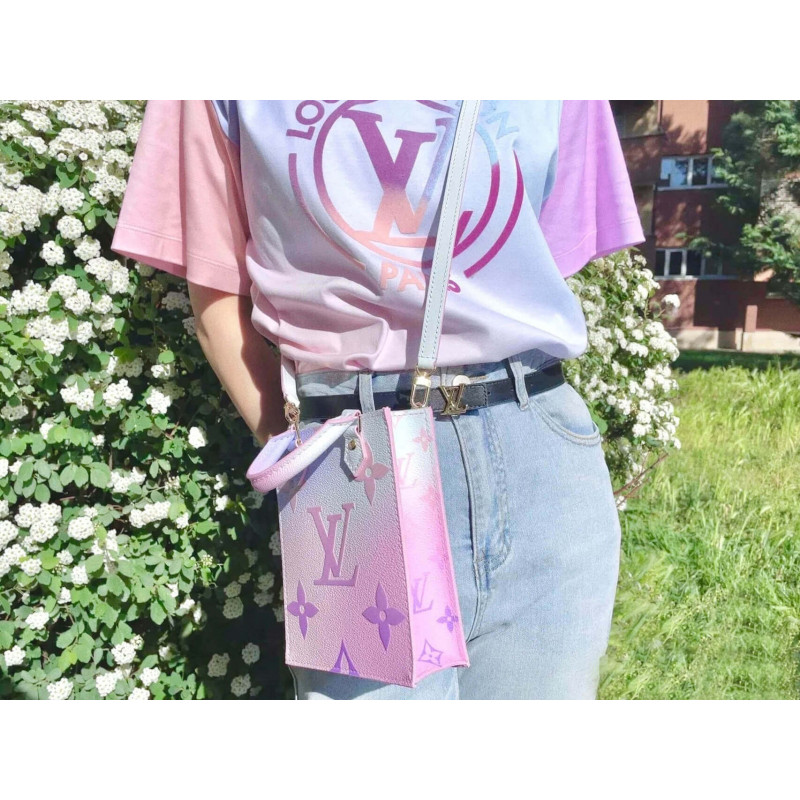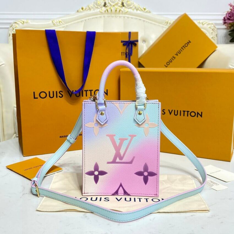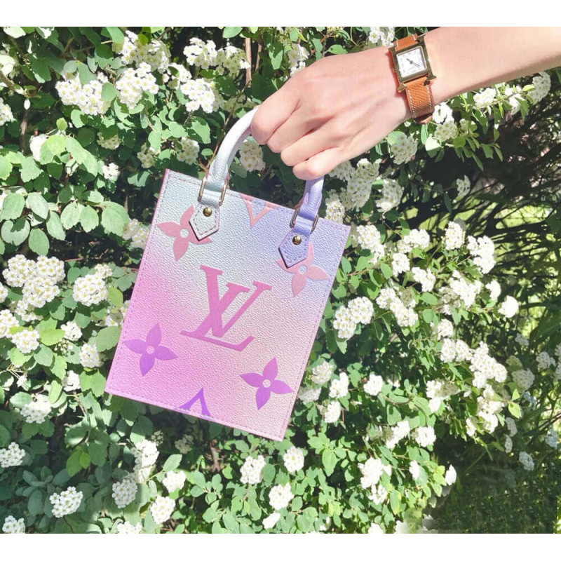 This special edition of the Petit Sac Plat is part of the Spring in the City collection. It comes in Monogram canvas printed with a color gradation inspired by the pastel hues of the sunrise. Lightweight and surprisingly spacious, this miniature replica of the iconic Sac Plat features a coordinating leather shoulder strap as well as two top handles.