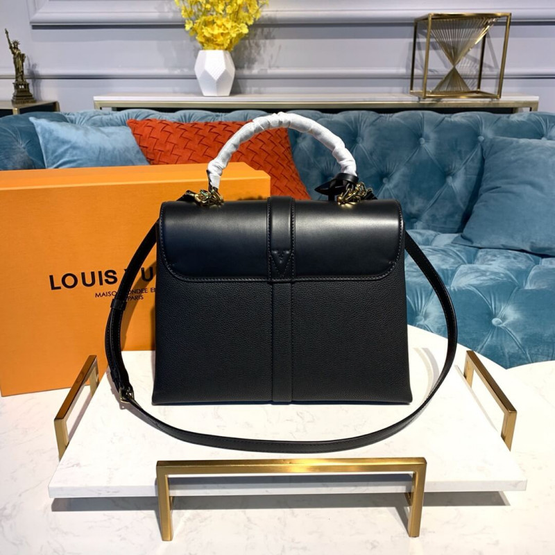 Louis Vuitton brings grained calf leather together with smooth calf leather in the fancy Rose des Vents MM handbag. Signed with a gold-tone LV padlock and a calf leather key bell, there’s a slender top handle for elbow carry and an adjustable strap for cross-body wear. Inside compartments and pockets make it a practical and sophisticated everyday bag.