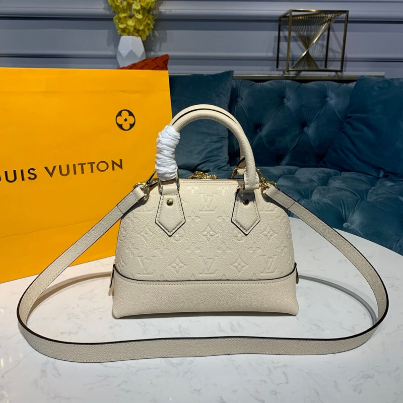 Fashioned from supple Monogram Empreinte leather with rounded top handles as well as a removable shoulder strap, the compact Neo Alma BB handbag makes the transition from day to evening seamlessly. The lining in a contrasting color and classic Louis Vuitton details such as the padlock and keybell make it both timeless and up-to-the-minute.
