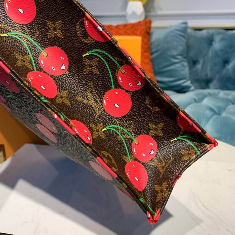 Louis Vuitton Sac Plat cherry limited edition tote bag. It is generously dimensioned to carry all your daily necessities with monogram cherry in style. Inside has 1 open pocket and a mobile pocket.