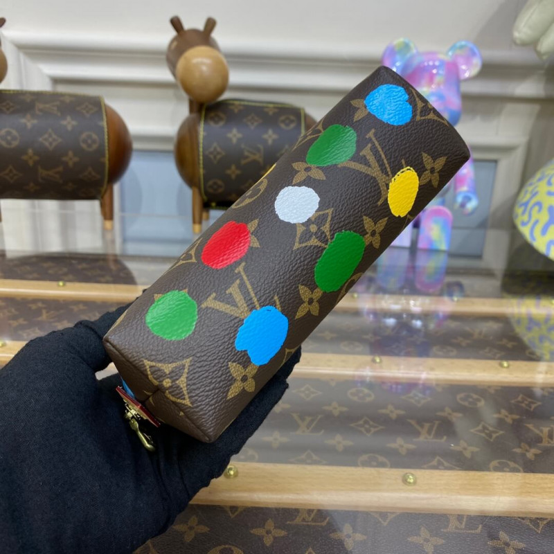The LVxYK Cosmetic Pouch is an exclusive special edition of a compact, practical accessory. For the new Louis Vuitton x Yayoi Kusama collection, Monogram canvas is adorned with a colorful dotted pattern, reproducing one of the venerated Japanese artist’s emblematic motifs. A sophisticated screen-printing technique creates a 3D effect, just like Kusama’s original hand-painted dots. A timeless gift for art lovers and a collector’s item for Monogram fans.
