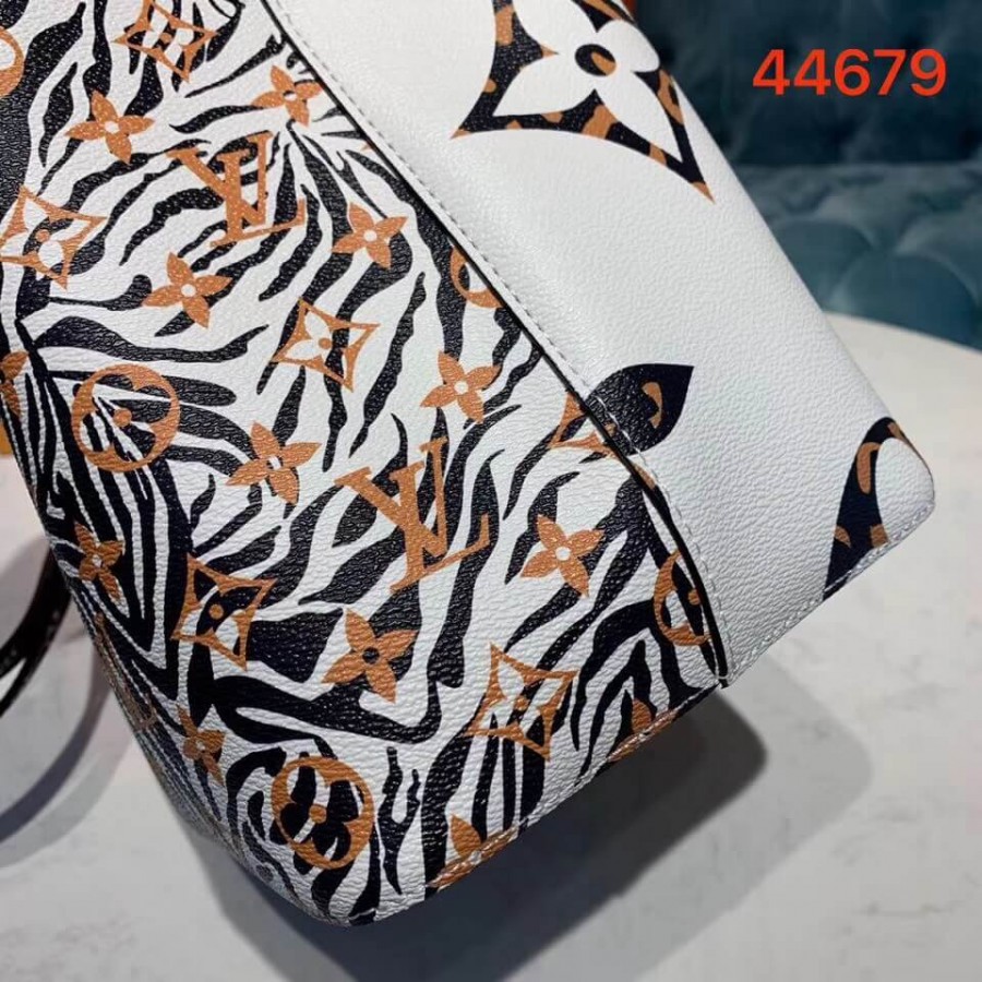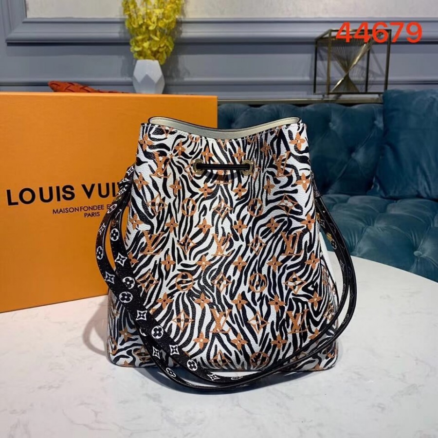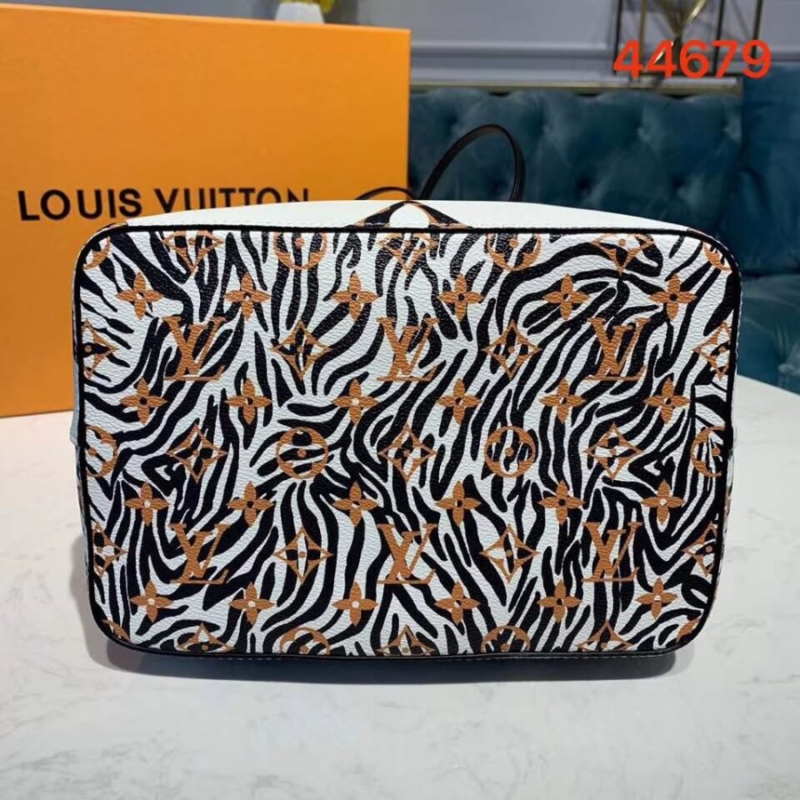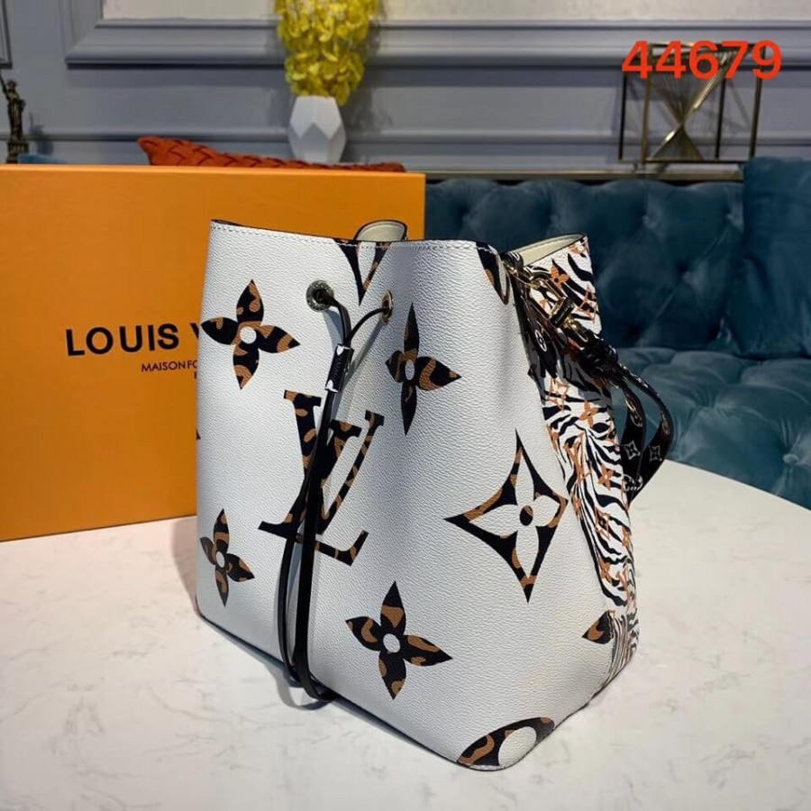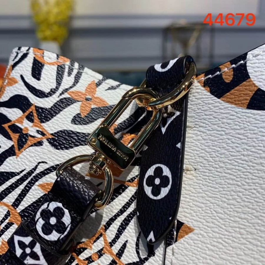 Mixing the Monogram motif with animal patterns, the NéoNoé takes on a savage look as part of the LV Jungle capsule collection. This bucket bag is both boldly fashionable and remarkably practical, thanks to its body-friendly and light-weight construction. Its adjustable strap enables three carrying styles: short or long shoulder and cross-body.
