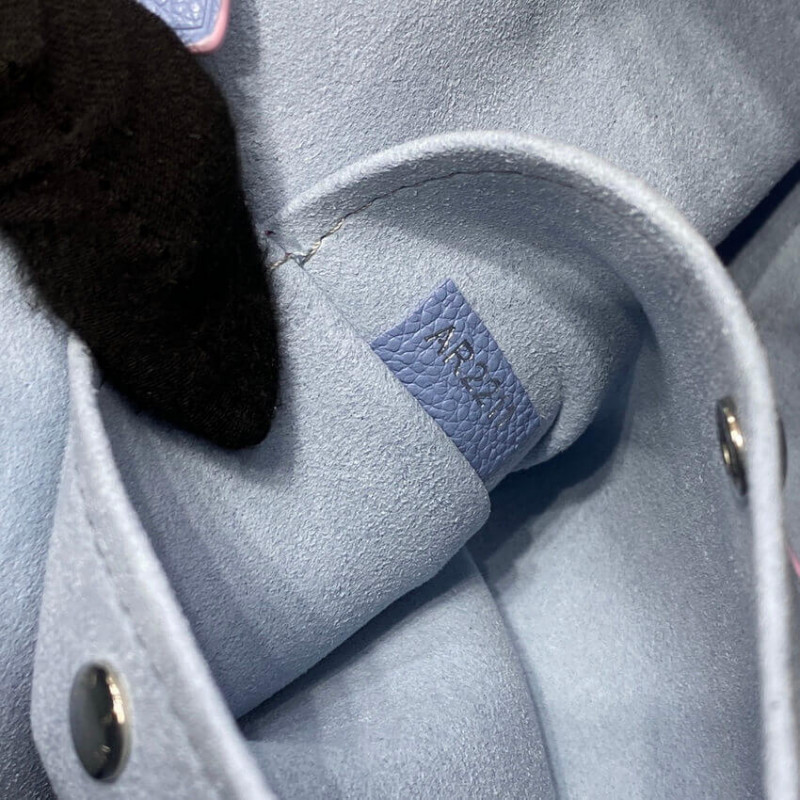 The adorable NeoNoé BB bucket bag is fashioned from the Summer Stardust version of Monogram Empreinte leather, a three-step spraying process giving the leather a shimmering aspect. A removable top handle and detachable strap provide carry options. The bag closes with a drawstring while the inside central pocket closes with a press stud.