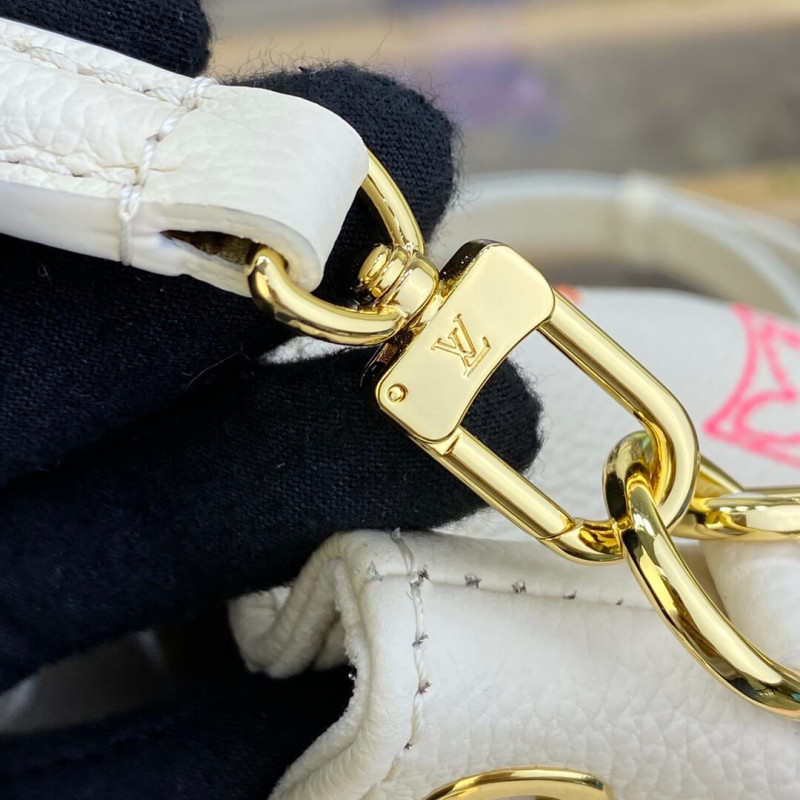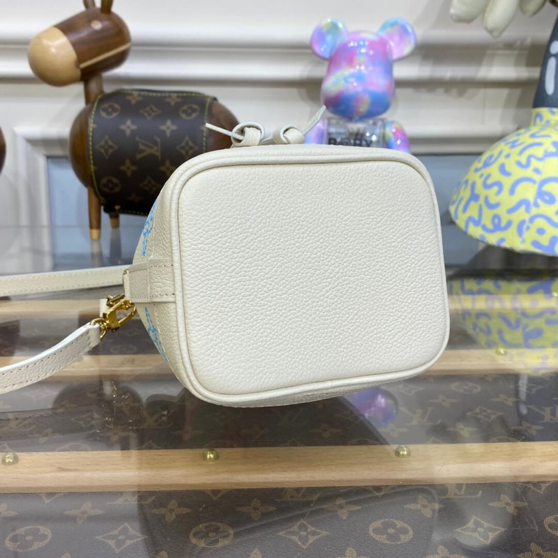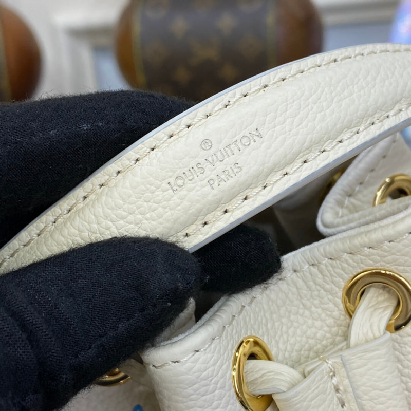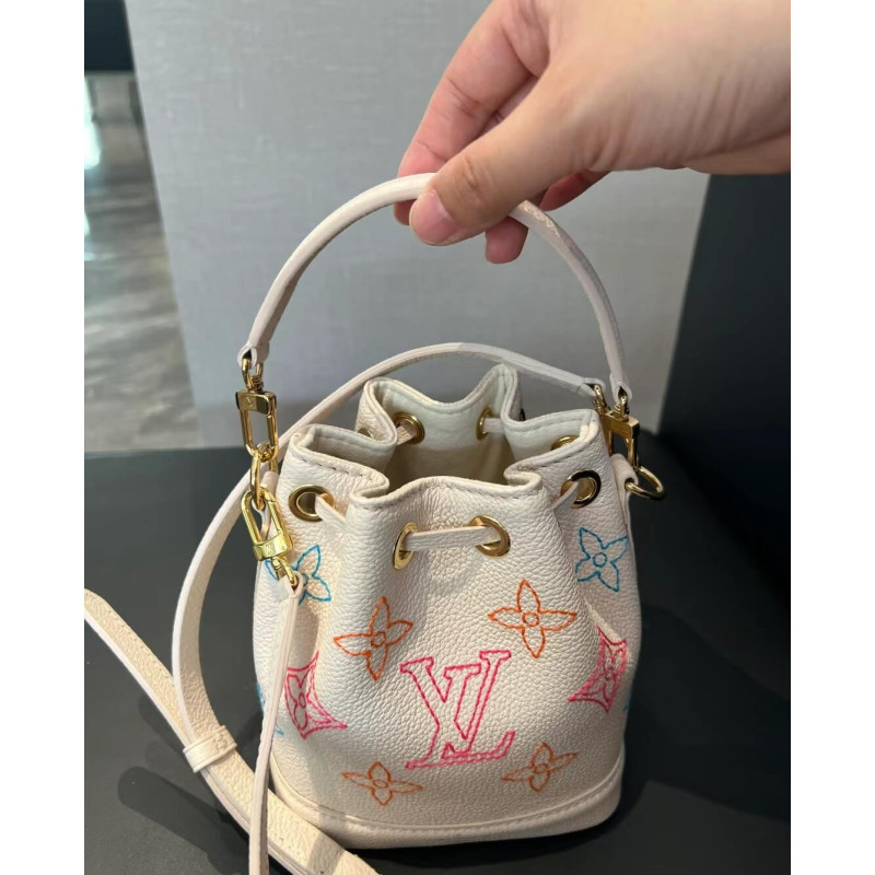 The Nano Noé bag from the LV Academy collection is a pocket version of the Noé bag. Monogram Empreinte soft grain leather presents colorful Monogram embroidery patterns, the drawstring design continues the classic details, and the handle and adjustable shoulder strap are detachable for multiple carrying methods.
