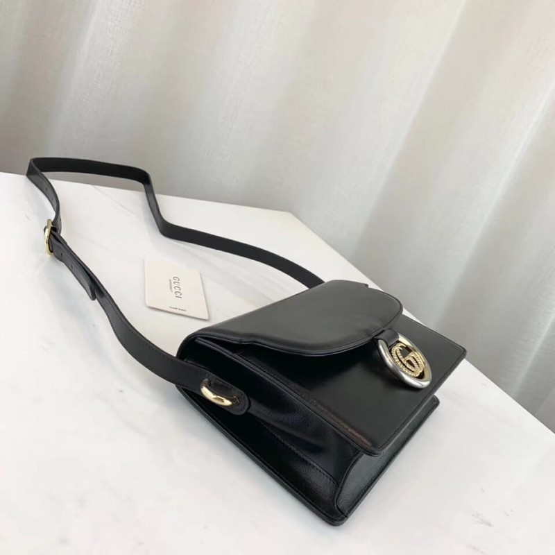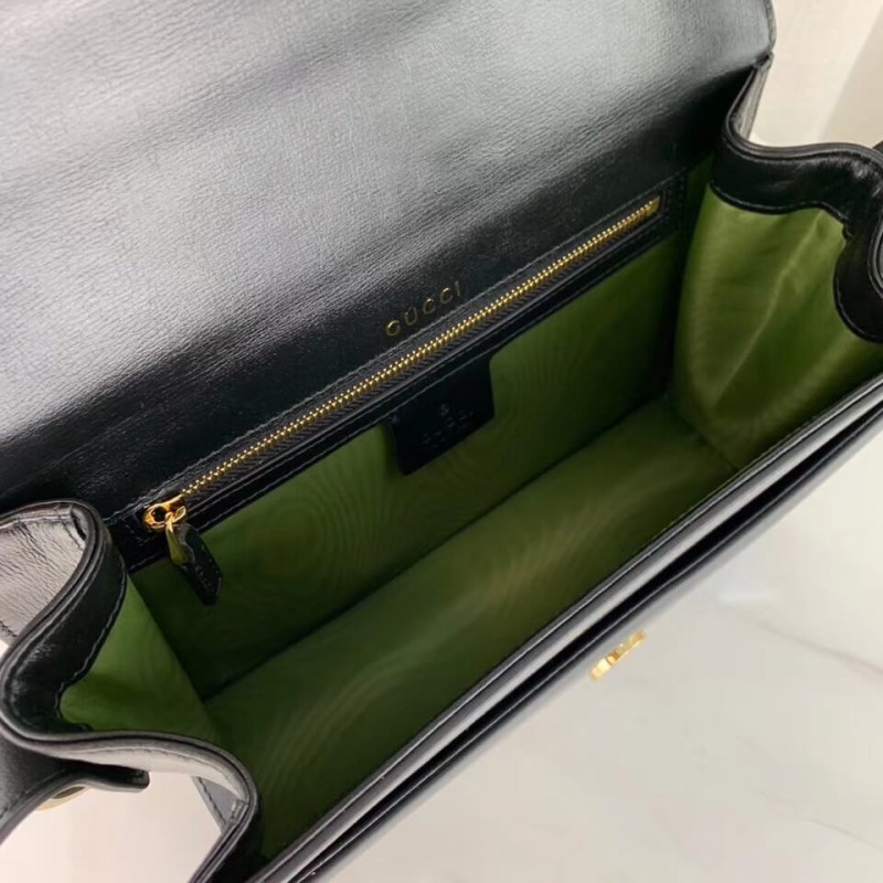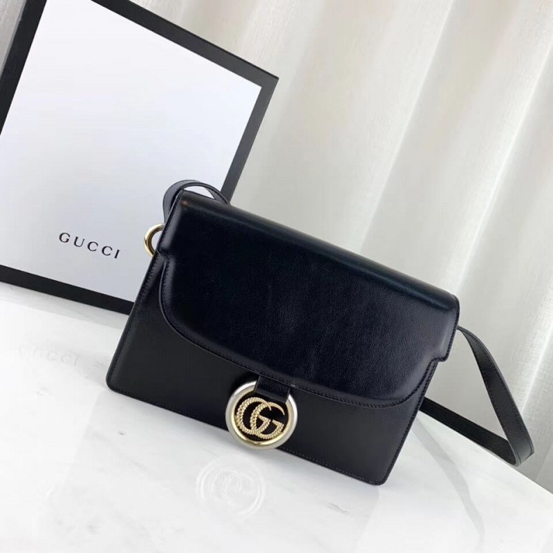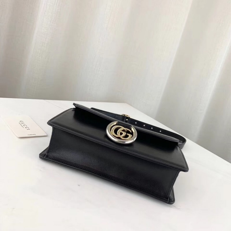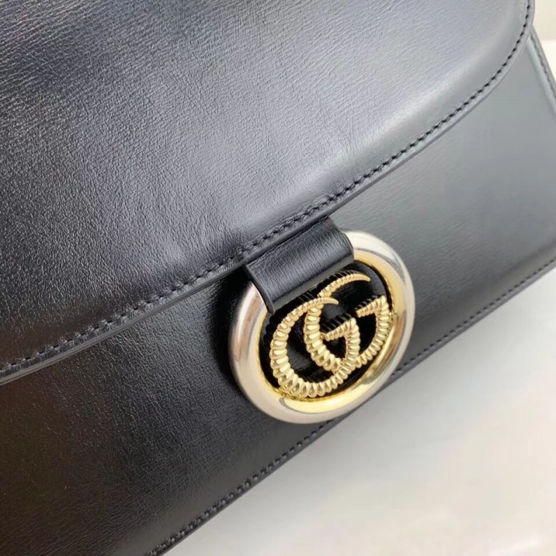 Presented in textured red leather, this small structured shoulder bag introduced for Fall Winter 2019 reintroduces the Double G with a twisted torchon finish surrounded by a ring. The defining detail plays with a mix of shiny and antique gold-toned metals that adds an unexpected element to the signature hardware. The silhouette is completed with an adjustable leather shoulder strap and a flap closure with a hidden pocket detail.