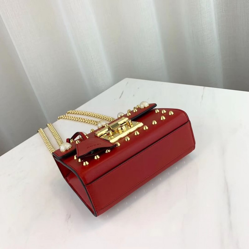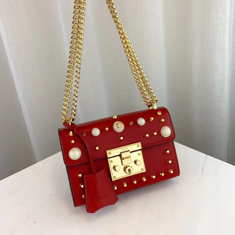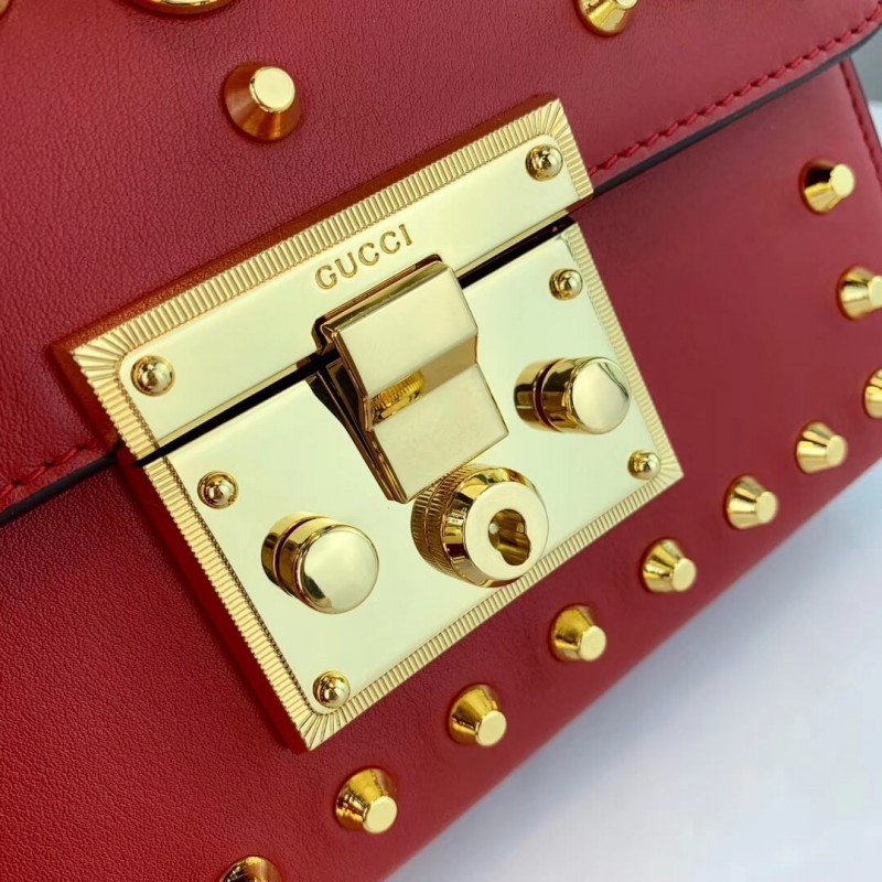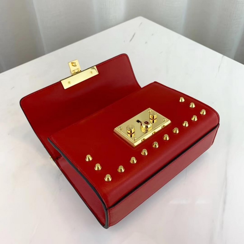 Characterized by structured silhouettes and a key lock closure pulled straight from the House s archives, the distinctive Padlock shapes are revamped season after season. For Cruise 2019, the small shoulder bag is presented in textured leather printed with metallic gold bees and stars. The key is placed in a detachable leather key case.