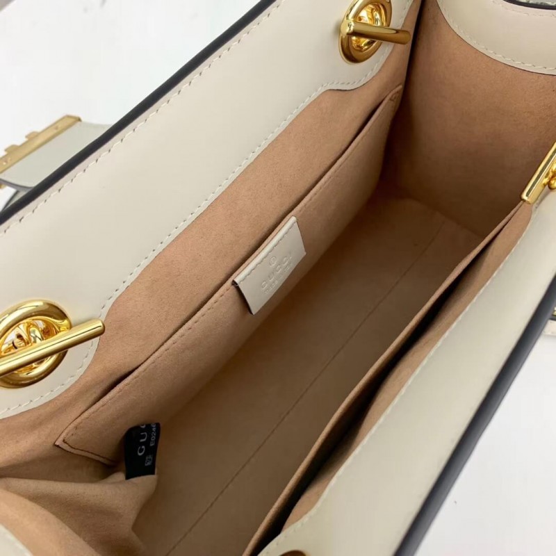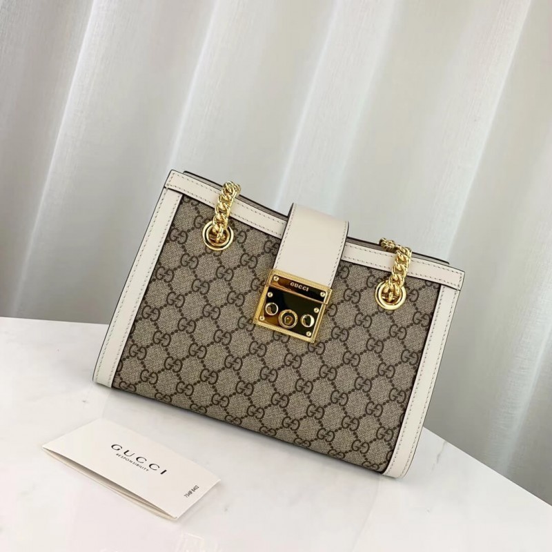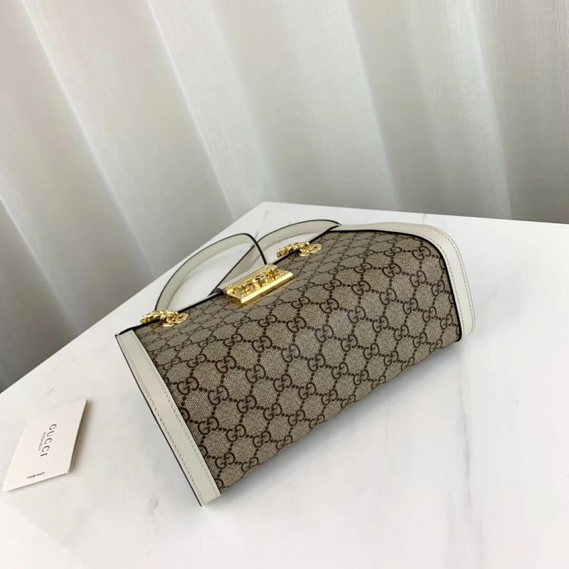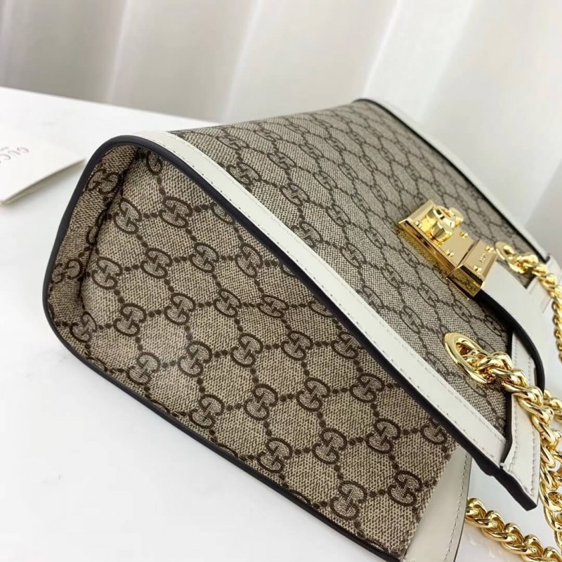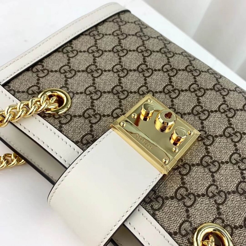 A structured shoulder bag in GG Supreme canvas with a strap that secures with a key lock closure pulled straight from the archives. The key is placed in a detachable leather key case.
