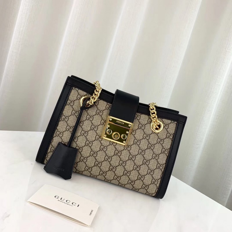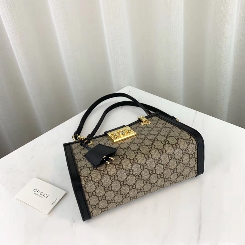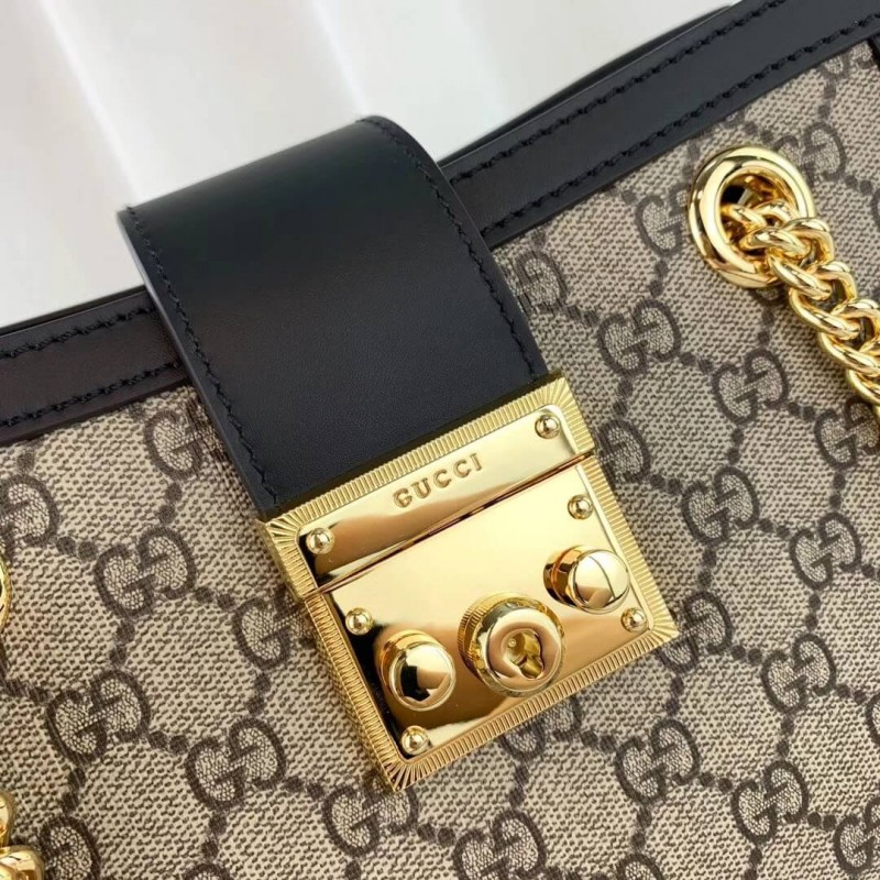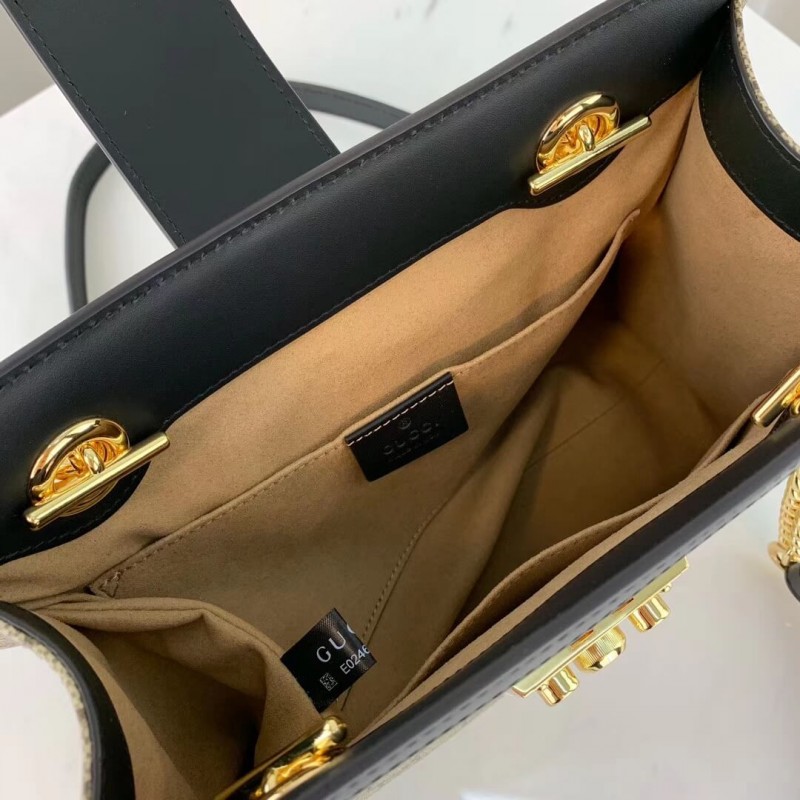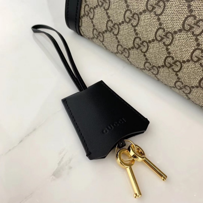 A structured shoulder bag in GG Supreme canvas with a strap that secures with a key lock closure pulled straight from the archives. The key is placed in a detachable leather key case.