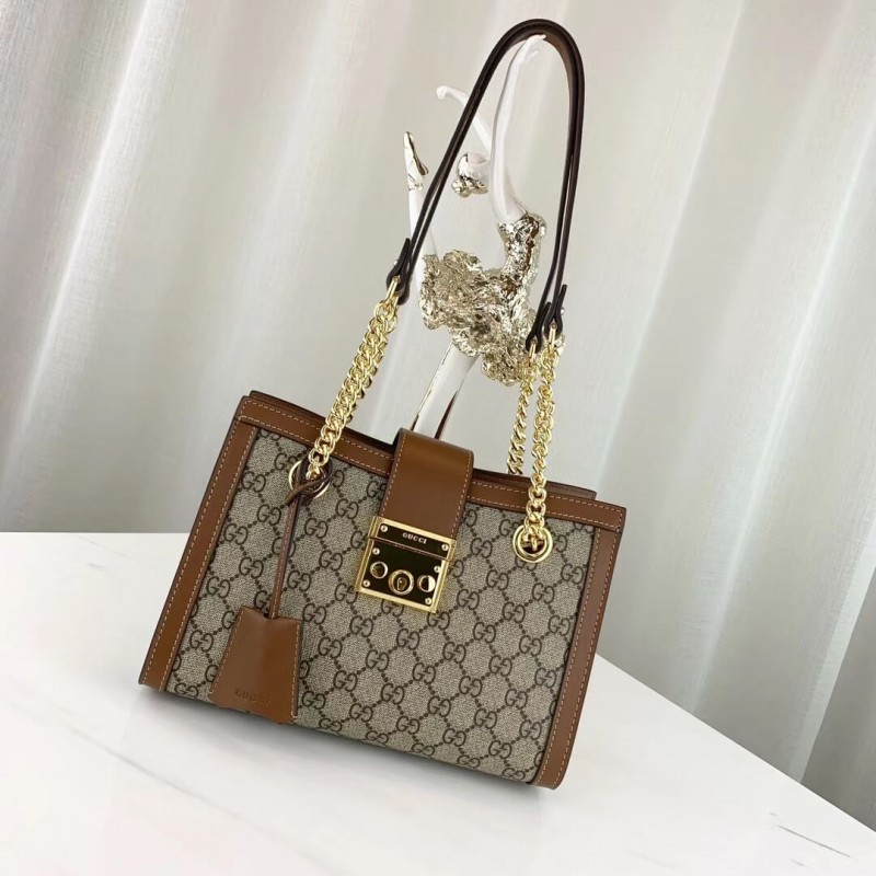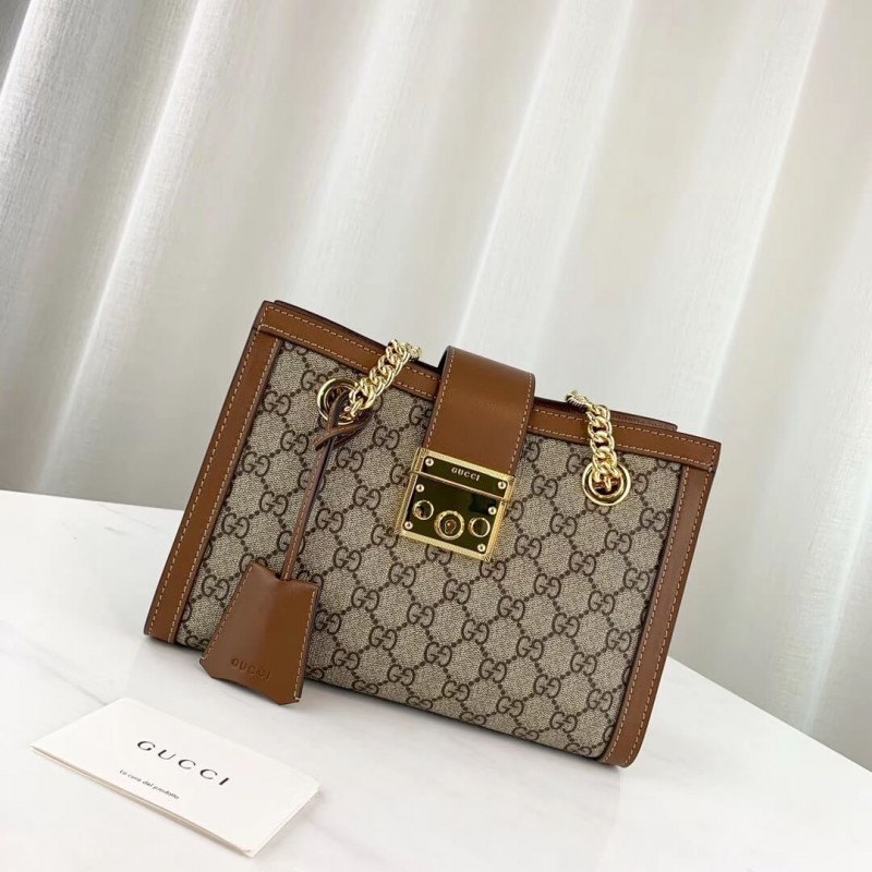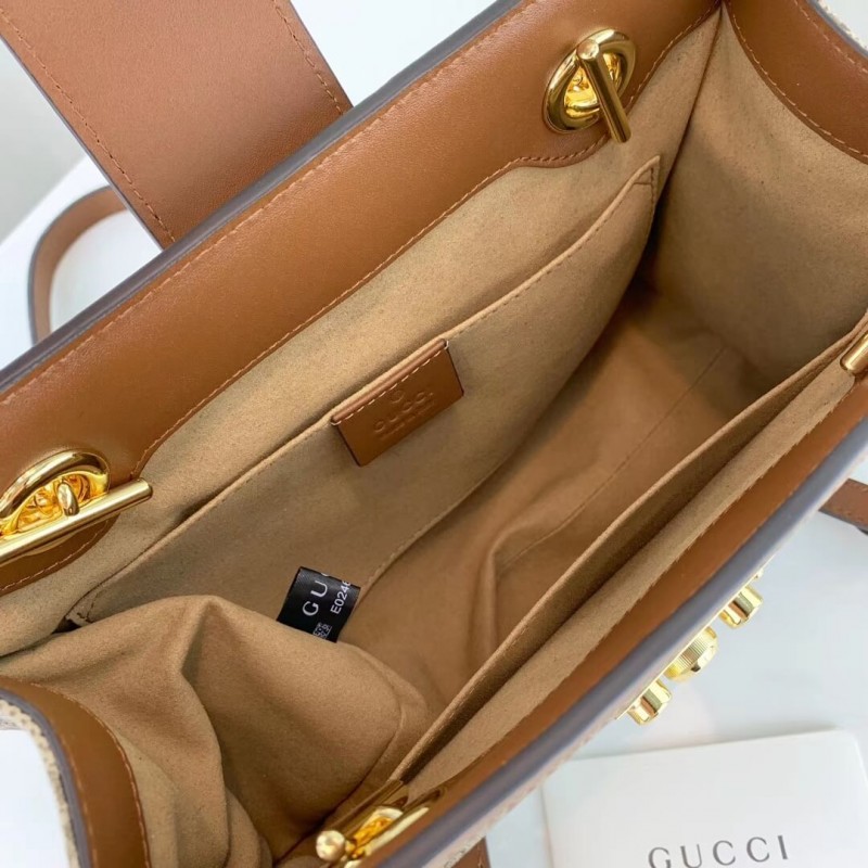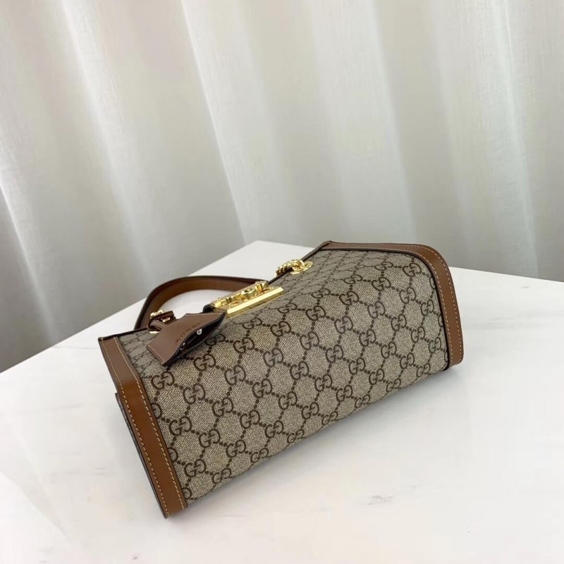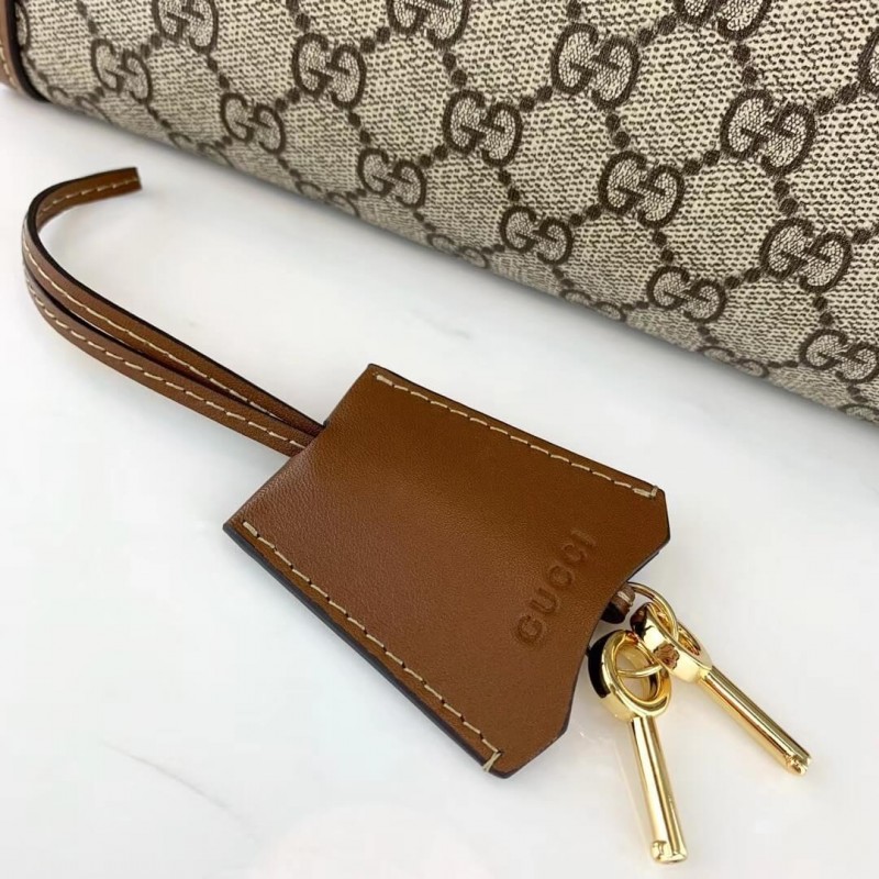 A structured shoulder bag in GG Supreme canvas with a strap that secures with a key lock closure pulled straight from the archives. The key is placed in a detachable leather key case.
