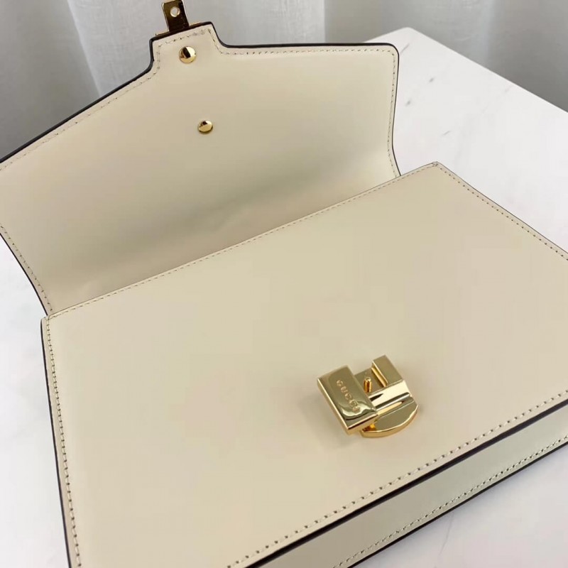 A playful mix of House codes, the Sylvie shoulder bag combines a gold metal chain and buckle with contrasting Web stripe details. The signature Gucci shape from the 60s and 70s is brought back from the archives in a modern iteration that can be mixed-and-matched with different straps and worn in a number of ways. The structured silhouette comes with two straps: one leather shoulder strap and one grosgrain ribbon that converts from top handle to shoulder. For an additional way to wear it, a coordinating leather crossbody strap was specially designed and is available separately.