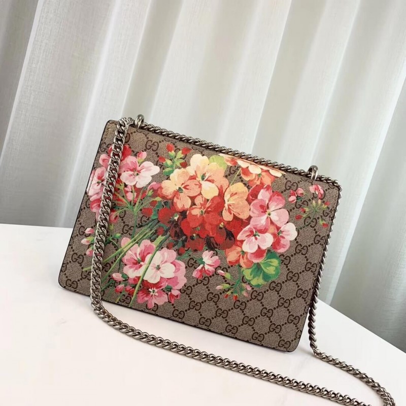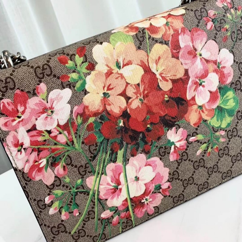 - Blooms print GG Supreme canvas, a material with low environmental impact, with black suede detail