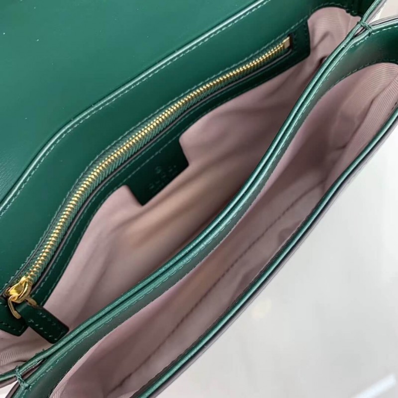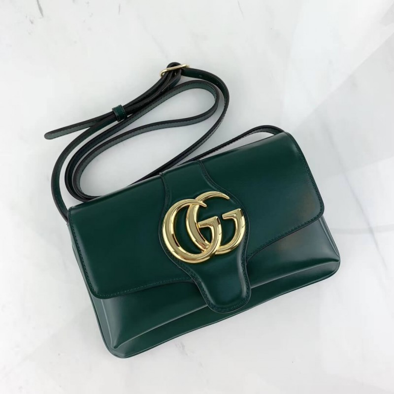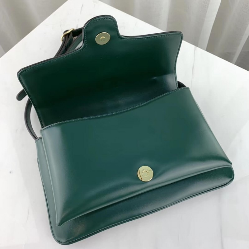 Brought back from the 1970s archives, the Double G hardware defines a new line of shoulder bags. The oversize emblem decorates the exaggerated flap closure of a small shoulder bag. The silhouette has a vintage feel with an adjustable shoulder strap, crafted in black leather with a rich softness and shiny look. The accessory was first presented in the Cruise 2019 collection, revealed in the evocative setting of the Promenade des Alyscamps, an ancient Roman necropolis in the French town of Arles—which gives the name to the line.