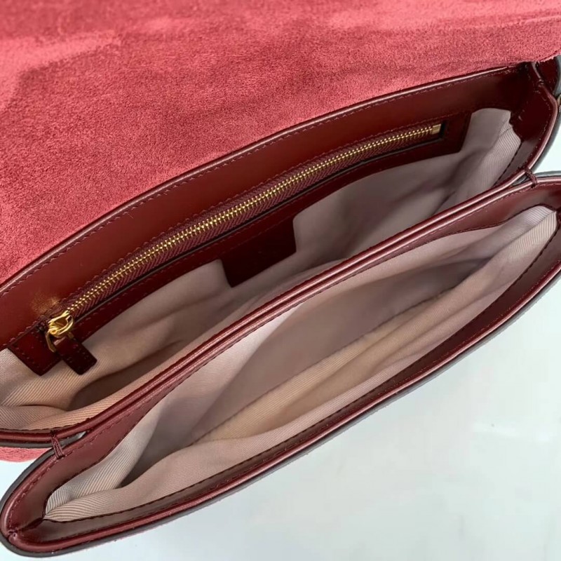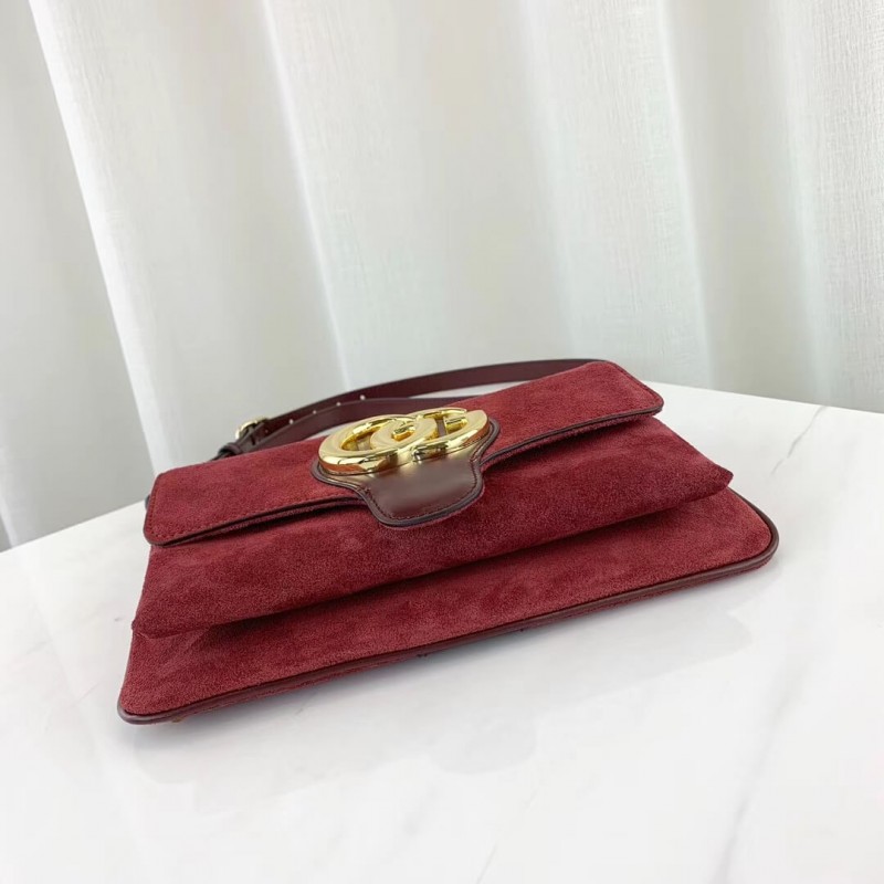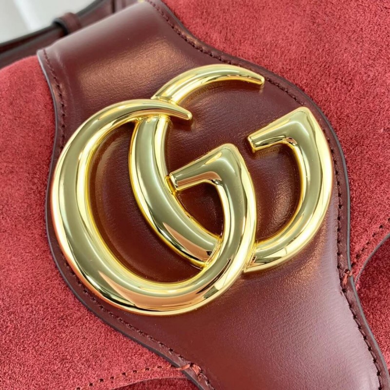 Brought back from the 1970s archives, the Double G hardware defines a new line of shoulder bags. The oversize emblem decorates the exaggerated flap closure of a small shoulder bag. The silhouette has a vintage feel with an adjustable shoulder strap, crafted in black leather with a rich softness and shiny look. The accessory was first presented in the Cruise 2019 collection, revealed in the evocative setting of the Promenade des Alyscamps, an ancient Roman necropolis in the French town of Arles—which gives the name to the line.