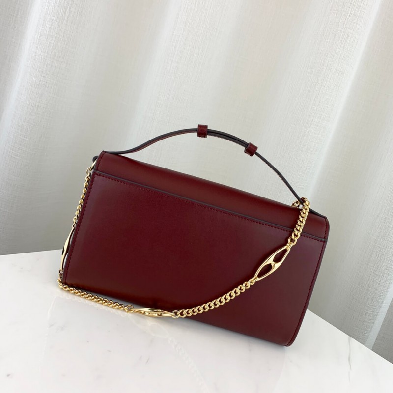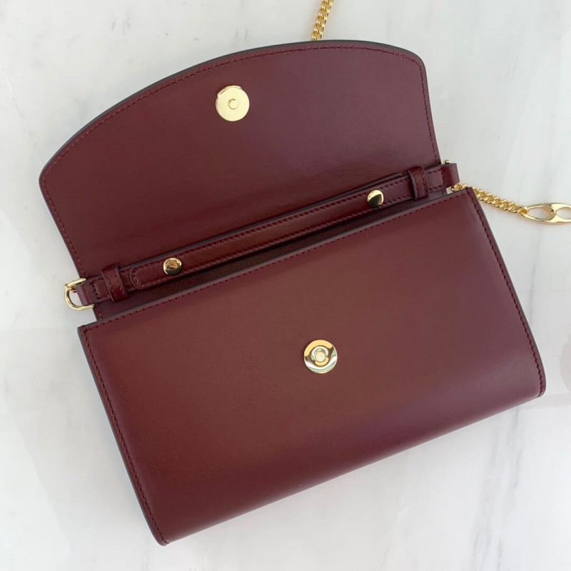 - Detachable Marina chain shoulder strap with 21.6" drop secures with a button closure at the interior flap