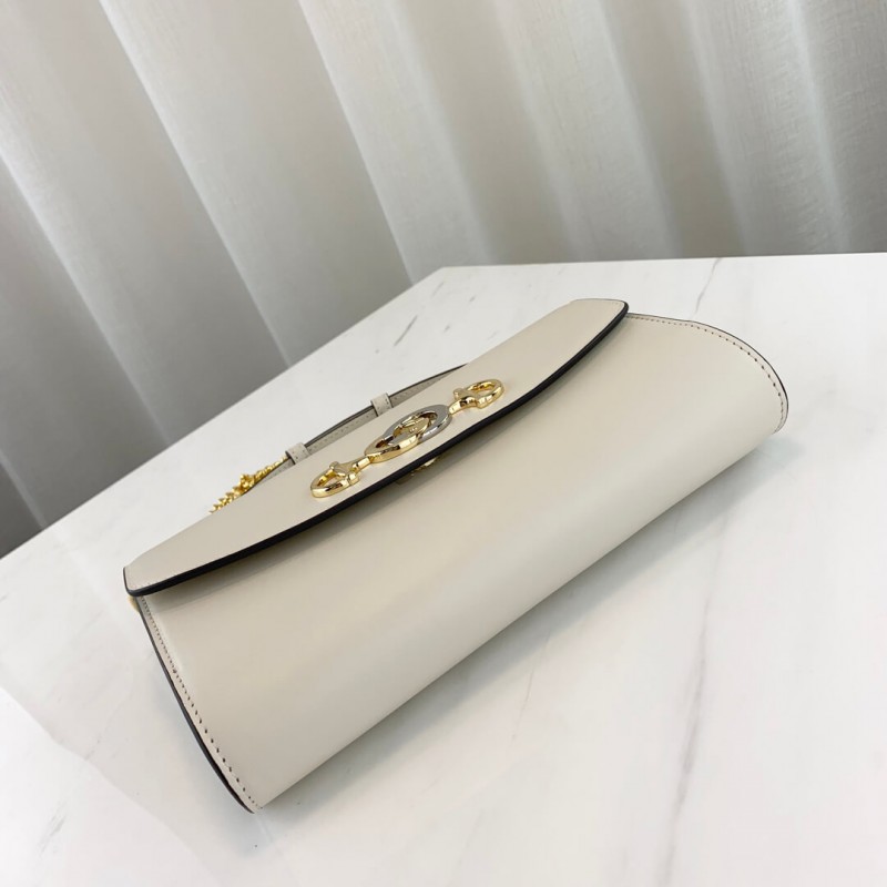 Merging two of its most distinctive codes into one symbol: the Interlocking G Horsebit – the hardware is replicated from a rare piece from the Gucci archives, chosen for its contemporary appeal and presented in a mix of silver and gold tones. Introduced in the evocative setting of the Théâtre Le Palace in Paris, the Gucci Zumi line takes its name from actress and experimental musician Zumi Rosow, who walked the Spring Summer 2019 runway carrying the bag. The bag can be carried cross body, used as a clutch when the chain is removed and worn as a top handle when the leather handle is extended.