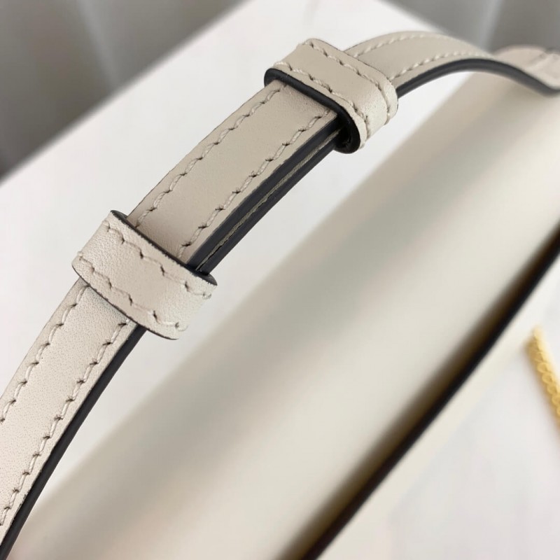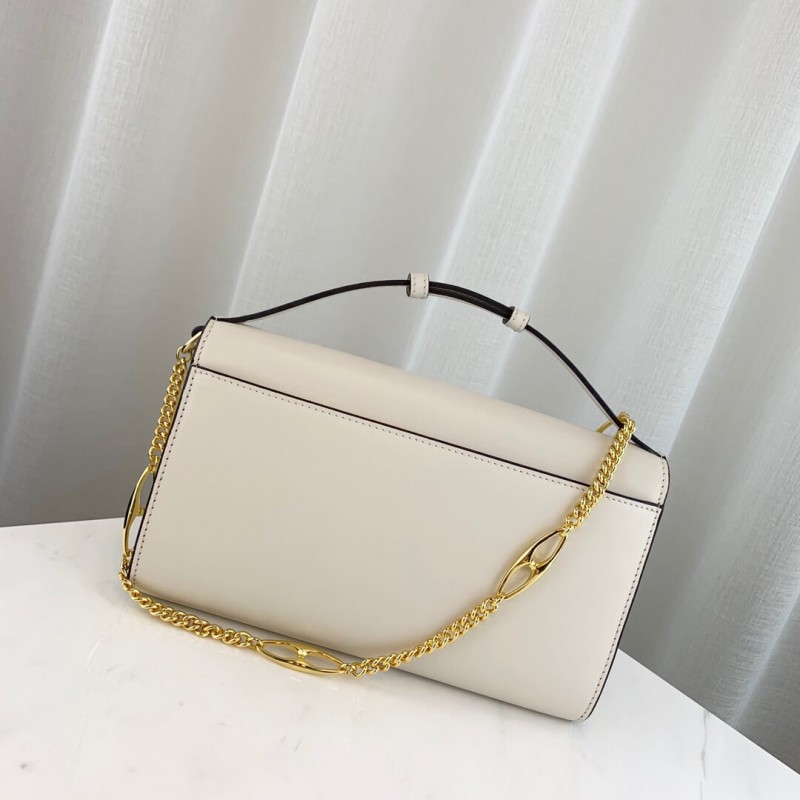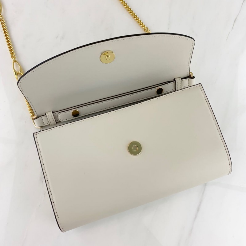 - Detachable Marina chain shoulder strap with 21.6" drop secures with a button closure at the interior flap