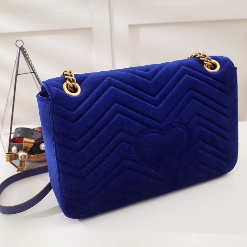 The medium GG Marmont chain shoulder bag has a softly structured shape and an oversized flap closure with Double G hardware. The sliding chain strap can be worn multiple ways, changing between a shoulder and a top handle bag. Made in matelassé chevron leather with a heart on the back.