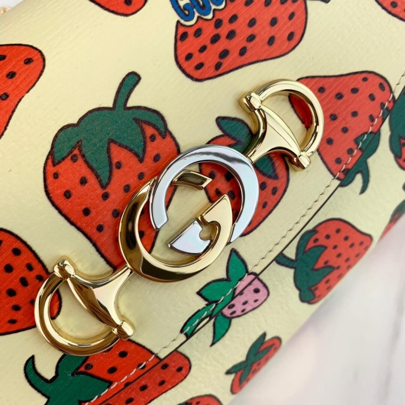 Merging two of its most distinctive codes into one symbol: the Interlocking G Horsebit – the hardware is replicated from a rare piece from the Gucci archives, chosen for its contemporary appeal and presented in a mix of silver and gold tones. Introduced in the evocative setting of the Théatre Le Palace in Paris, the Gucci Zumi line takes its name from actress and experimental musician Zumi Rosow, who walked the Spring Summer 2019 runway carrying the bag. The bag can be carried cross body, used as a clutch when the chain is removed and worn as a top handle when the leather handle is extended.