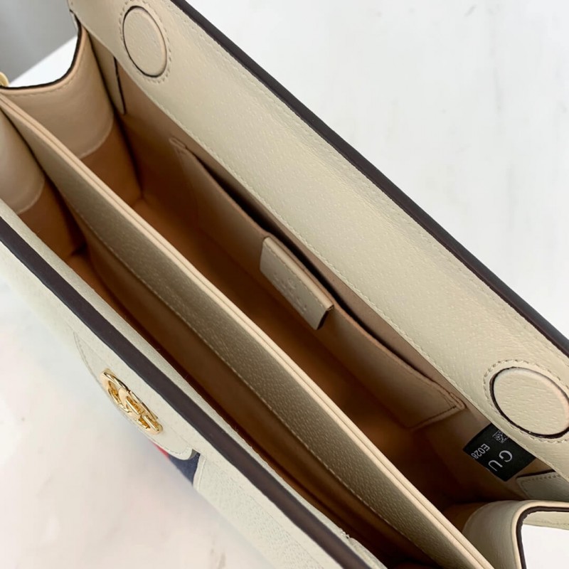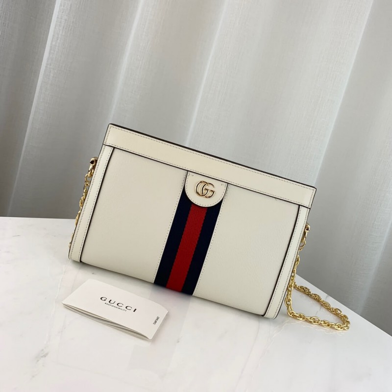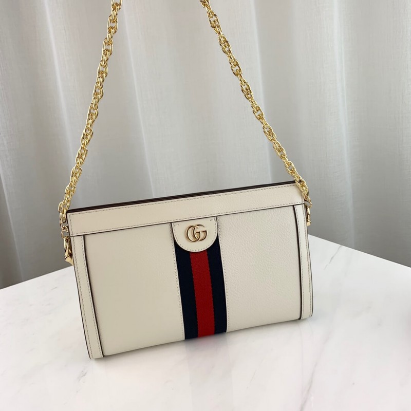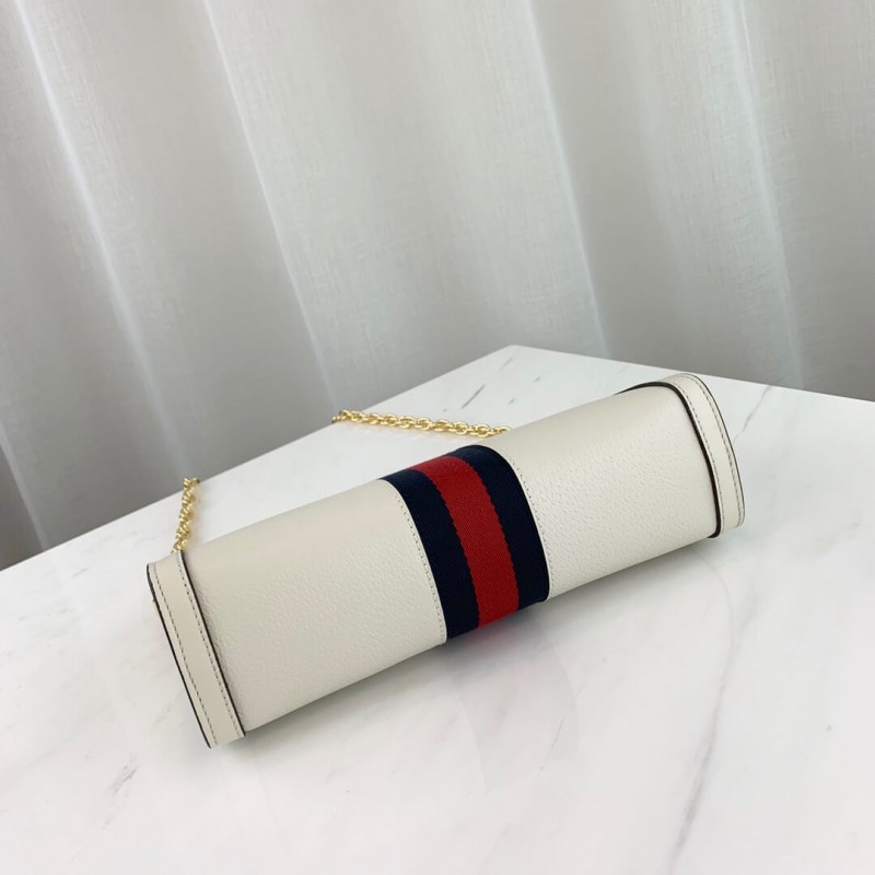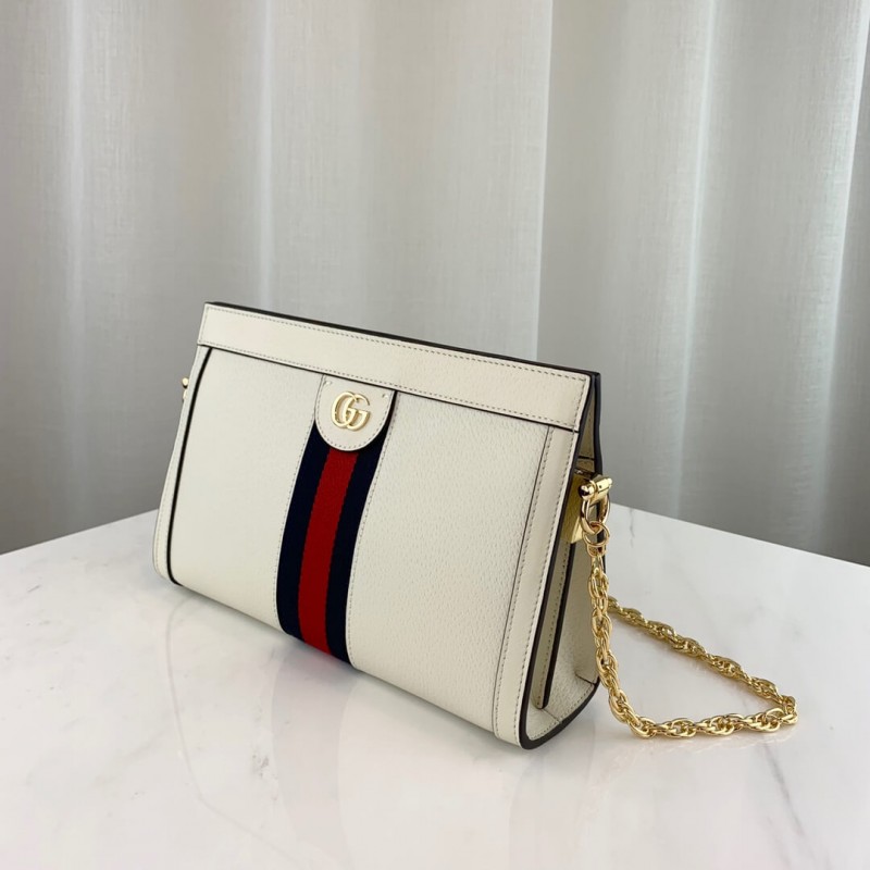 The small chain Ophidia shoulder bag is introduced in a new iteration for Pre-Fall 2019, crafted from black leather with inlaid green and red Web stripe. The coveted style is defined by small Double G details at the front tab—a contemporary take on a Gucci archival belt buckle from the 70s, repurposed into a precious petite variation.