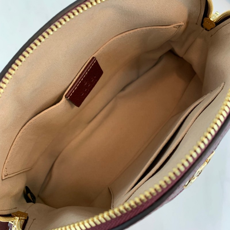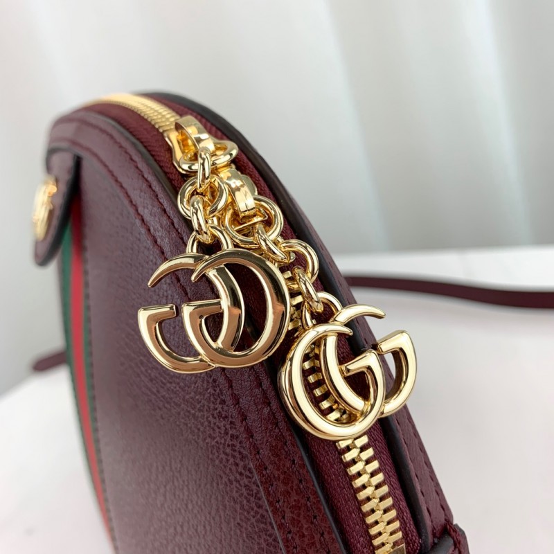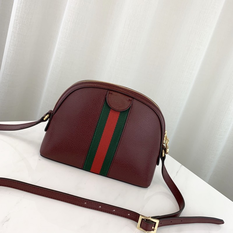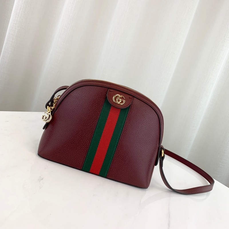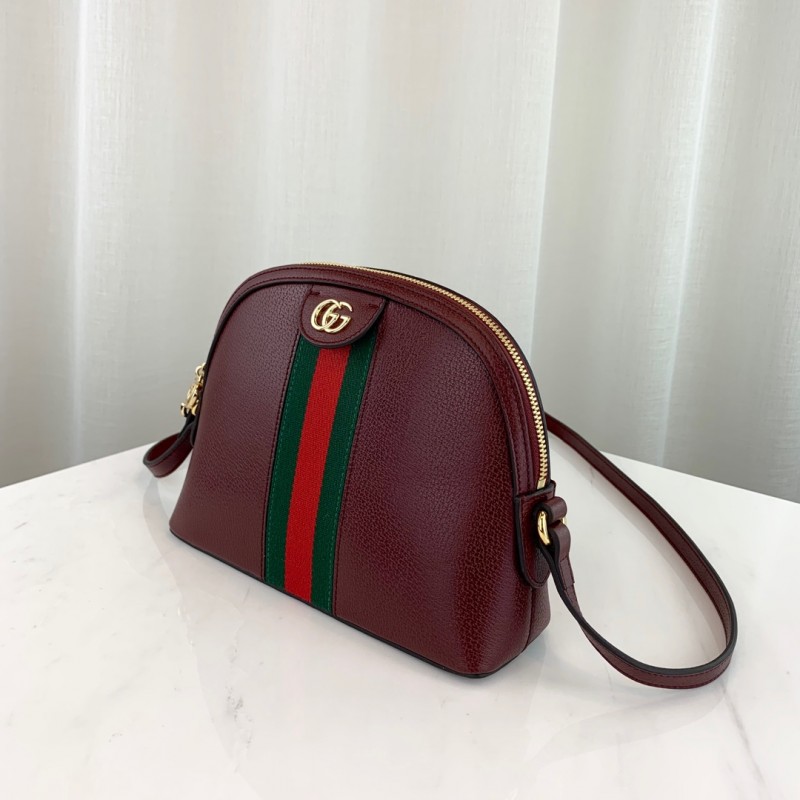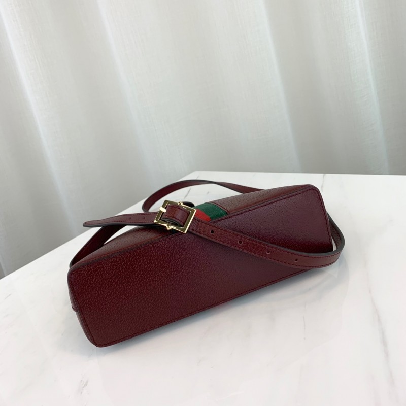 The rounded top Ophidia shoulder bag is introduced in a new iteration for Pre-Fall 2019, crafted from black leather with inlaid green and red Web stripe. The coveted style is defined by small Double G details at the front tab and zipper pulls—a contemporary take on a Gucci archival belt buckle from the 70s, repurposed into a precious petite variation.