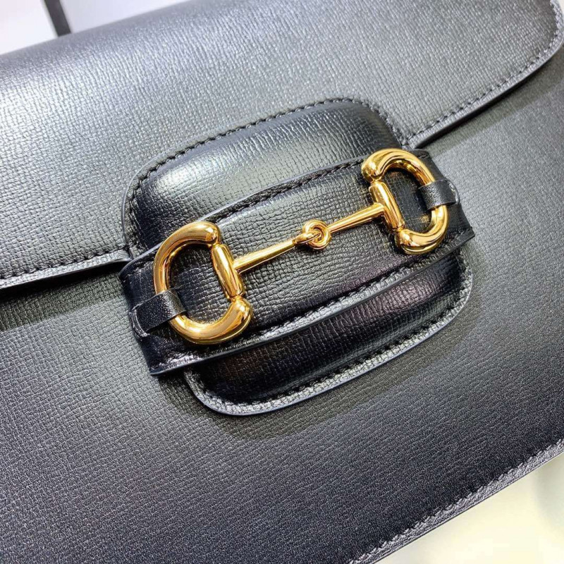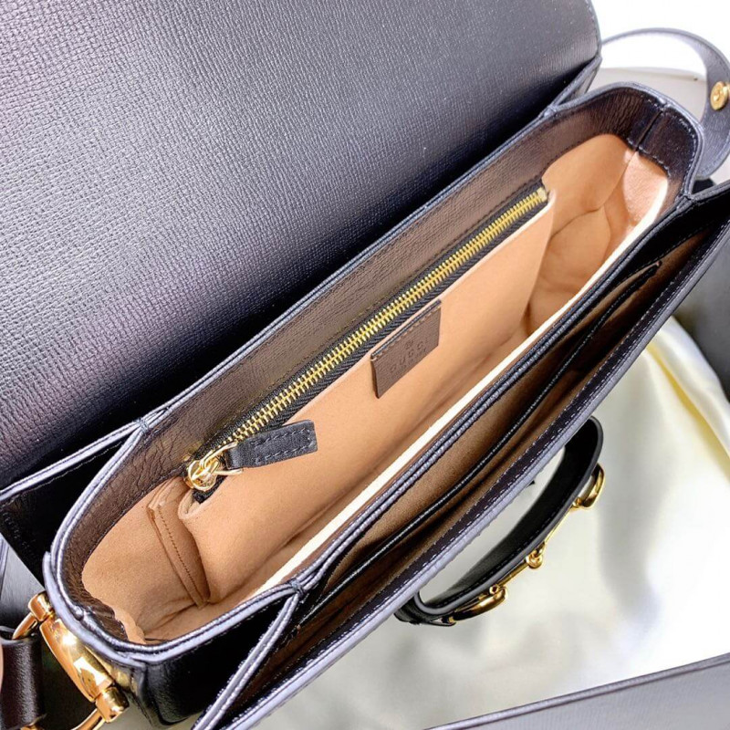 Introduced for Cruise 2020, the Gucci 1955 Horsebit bag is recreated from an archival design. With the same lines and forms first introduced over six decades ago, the accessory unifies the original details with a modern spirit, highlighting the Horsebit. Part of Gucci’s genetic code, the double ring and bar design has been established as one of the most distinctive elements among the House symbols borrowed from the equestrian world. Presented on a small flap shoulder bag, the hardware is paired with textured brown leather and completed with a special mechanism that adjusts the length of the shoulder strap so it can be carried on one shoulder or cross body.