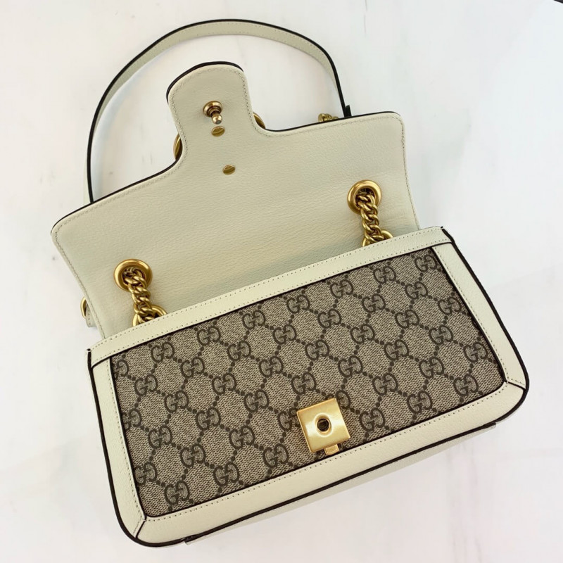 - Sliding chain strap can be worn as a shoulder strap with 22” drop, as a top handle with 12” drop or as a cross body bag