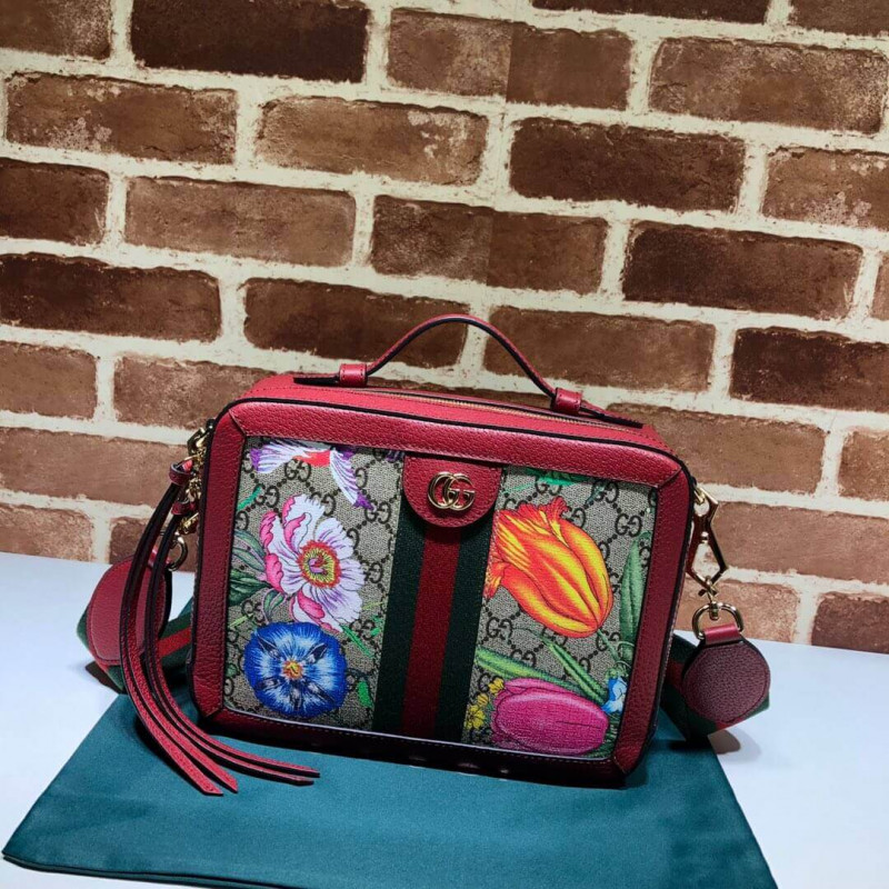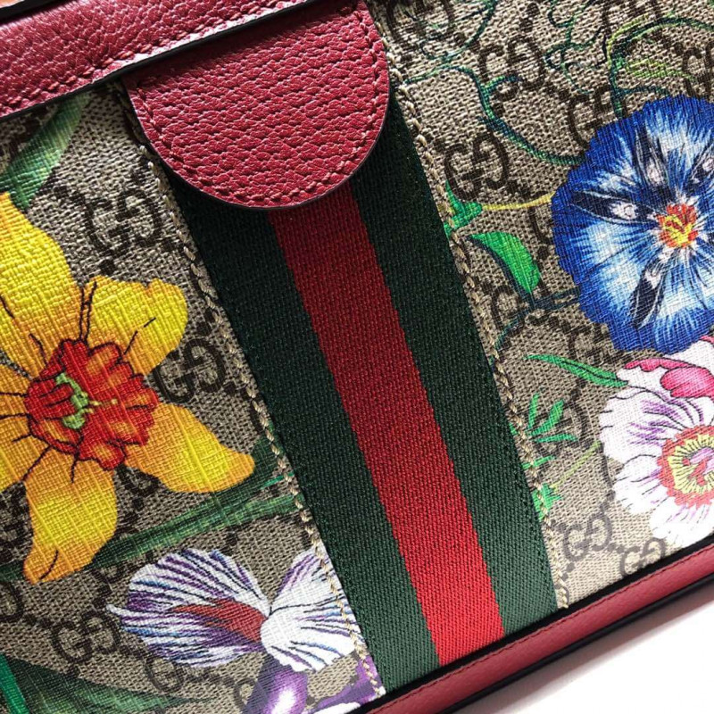 A special collection combines two of the House s most distinctive designs into an unexpected and contemporary fabric, animating classic silhouettes like the Ophidia top handle shoulder bag. The historic Flora motif, first presented by Vittorio Accornero more than 50 years ago, is layered over the House monogram and trimmed with red leather for a modern take on the two archival patterns.