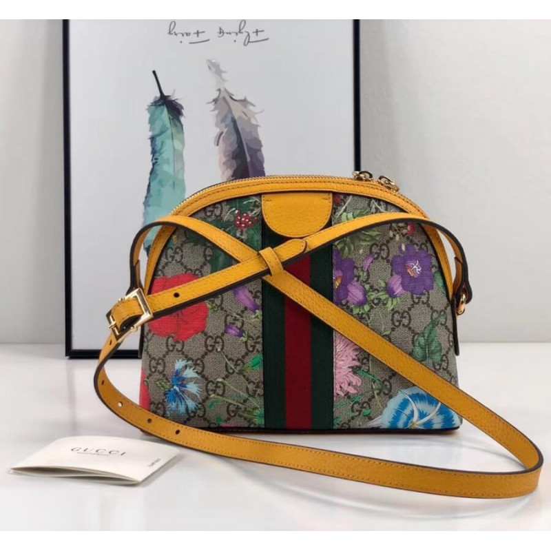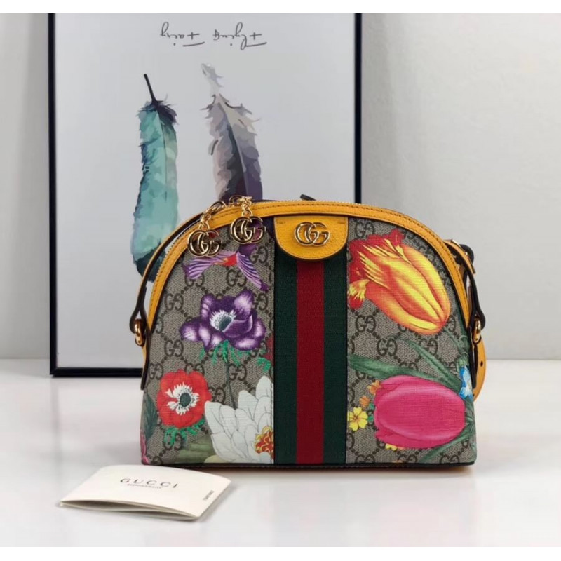 A special collection combines two of the House s most distinctive designs into an unexpected and contemporary fabric, animating classic silhouettes like the Ophidia shoulder bag. The historic Flora motif, first presented by Vittorio Accornero more than 50 years ago, is layered over the House monogram and trimmed with white leather for a modern take on the two archival patterns.
