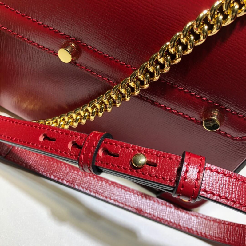 Archival details, including the bamboo handle and closure, combine in a modern silhouette in the small shoulder bag, crafted from textured black leather. The structured shape has a flap closure that locks with a key kept in a removable leather holder. The top handle shape is further enriched with a removable chain and leather shoulder strap.