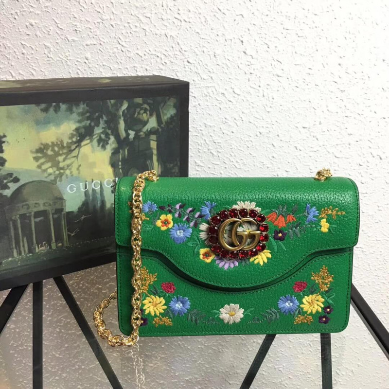 Gucci Floral Embroidered Small Leather Shoulder Bag 499617