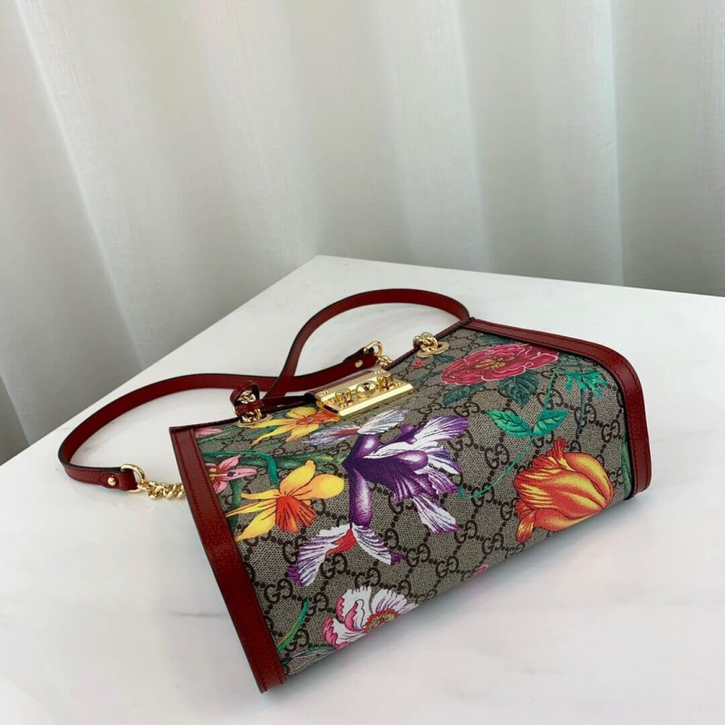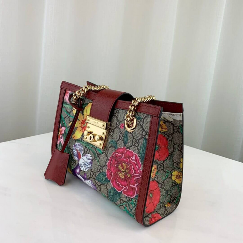 A special collection combines two of the House s most distinctive designs into an unexpected and contemporary fabric, animating classic silhouettes like the Padlock shoulder bag. The historic Flora motif, first presented by Vittorio Accornero more than 50 years ago, is layered over the House monogram and trimmed with bright white leather for a odern take on the two archival patterns.