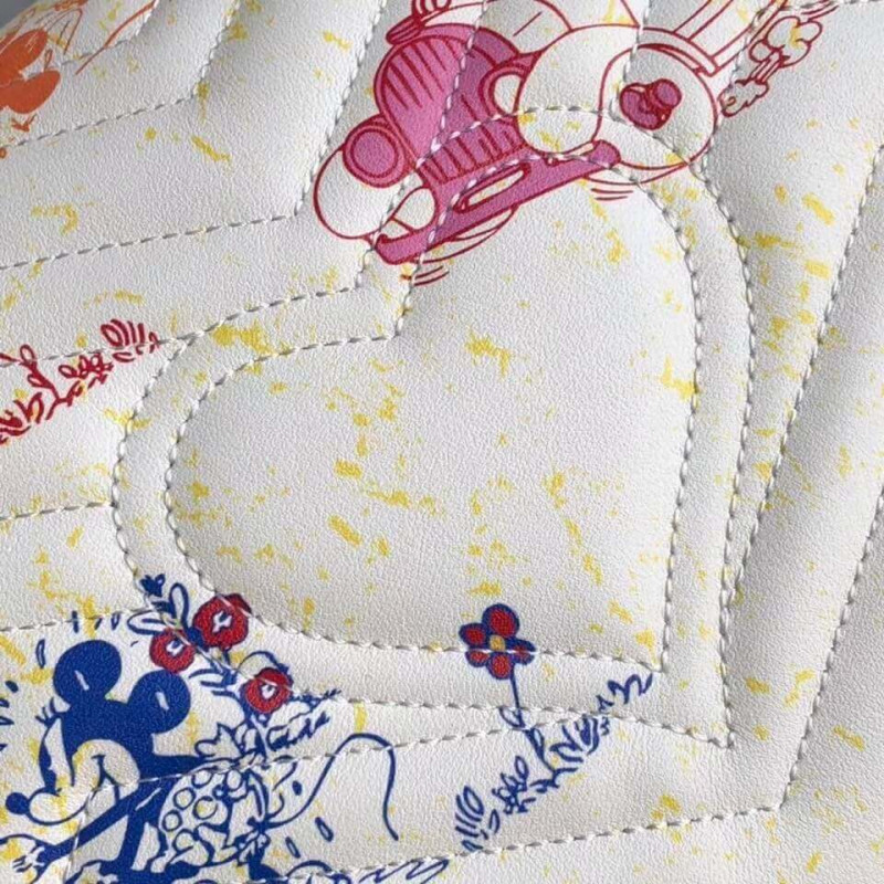 - Multicolor Mickey and Minnie Mouse print ivory matelassé chevron leather